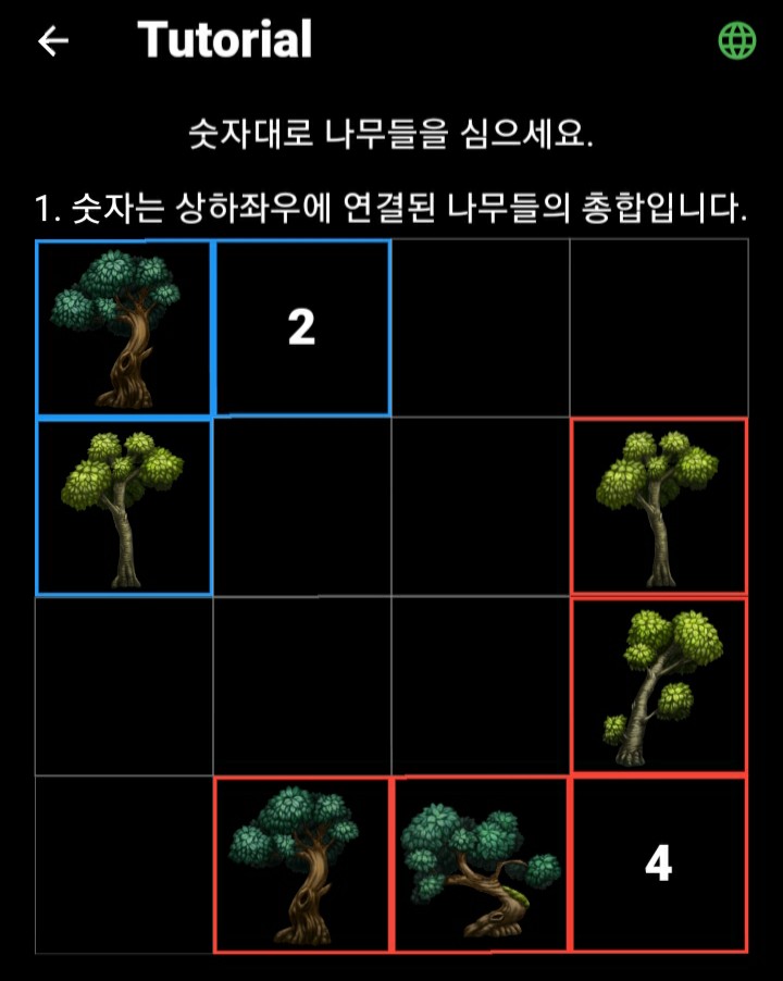 숫자에 맞게 나무를 연결시켜 심는 매우 흥미로운 게임입니다.