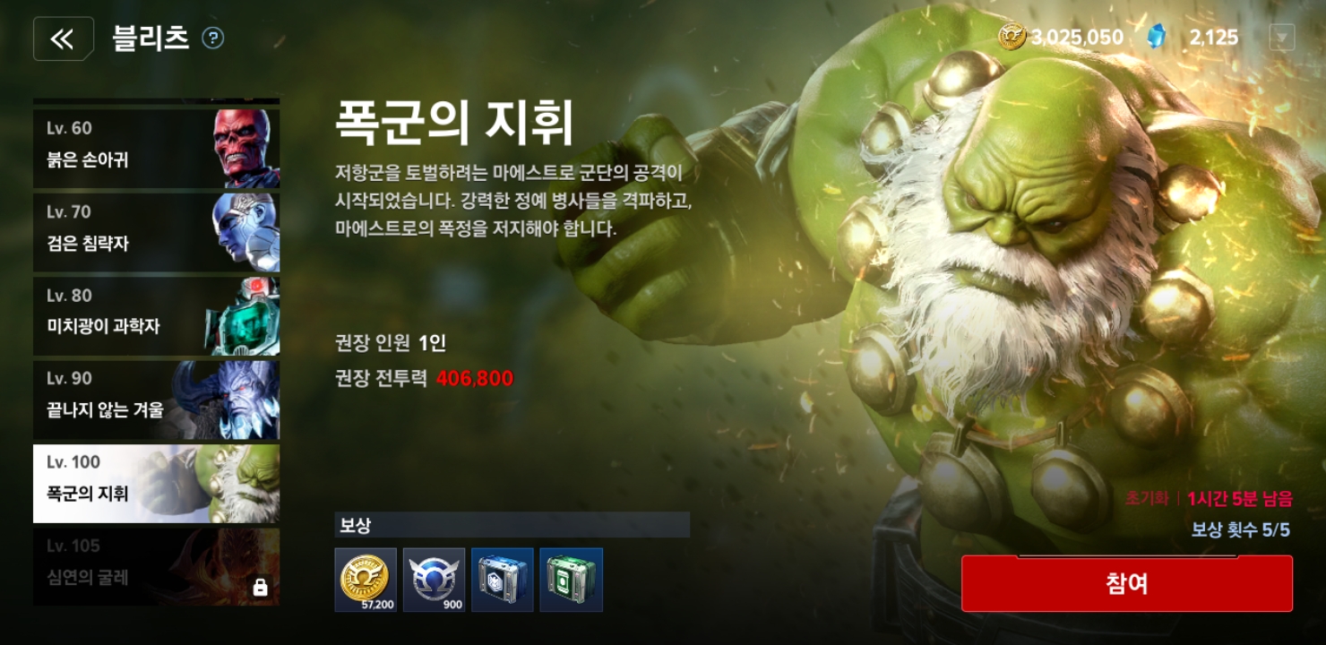 또다른 숙제로는 블리츠가 있습니다. 레벨에 맞는 빌런들을 처치하는 컨텐츠입니다.