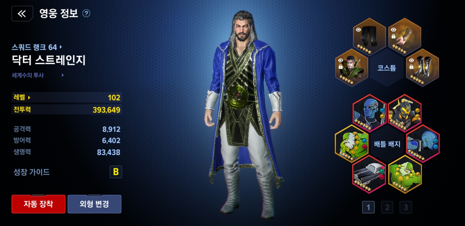 본케로 제가 가장 좋아하는 영웅인 닥터 스트레인지를 선택해서 키웠습니다.