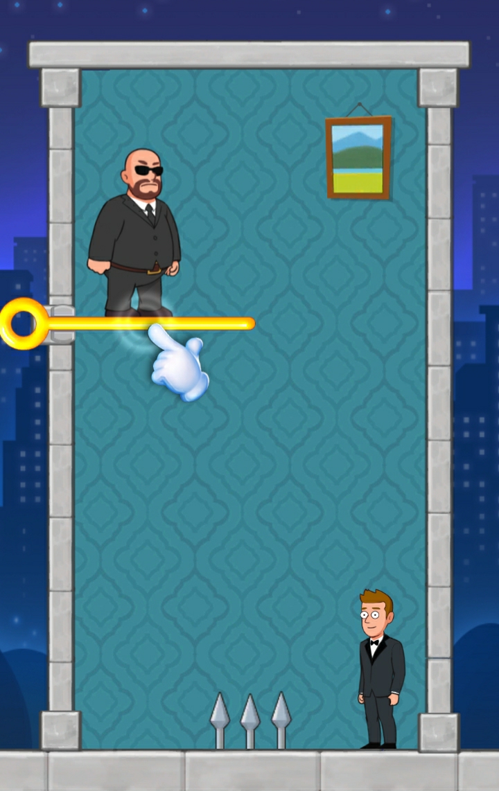 적 아래 지탱하는 핀을 뽑으면 가시에 떨어져 죽습니다.