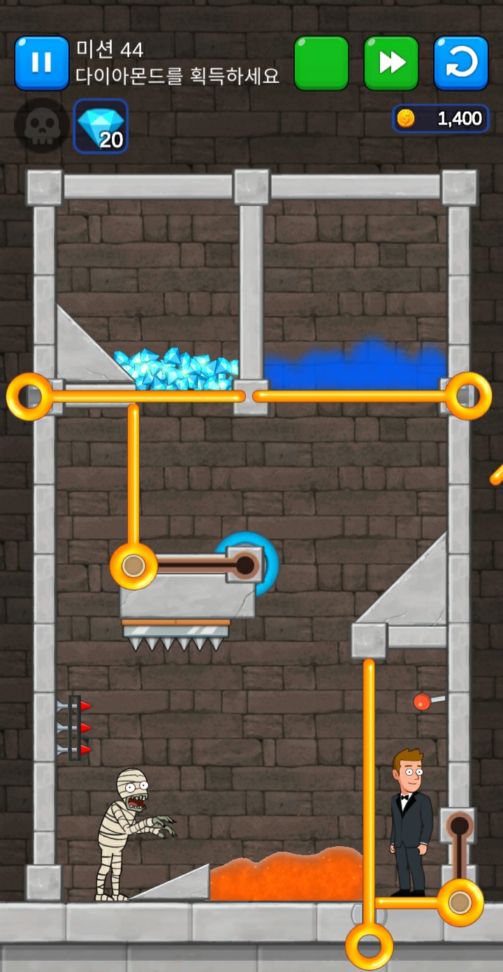 44탄의 경우는 좀비를 죽이기 위해 가시를 동작할지 용암에 빠뜨려야할지 미사일을 활용할지 여러가지 선택지가 있습니다.