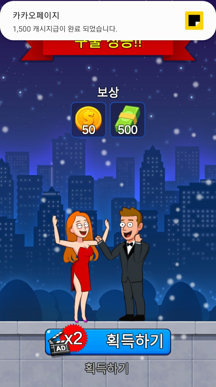 심지어 이처럼 공격적으로 마케팅(무려 카카오페이 캐시 1500)을 하는 게임은 더더욱 광고나 인게임 결제를 유도해서 마케팅 비용 이상의 수익을 올려야 합니다.