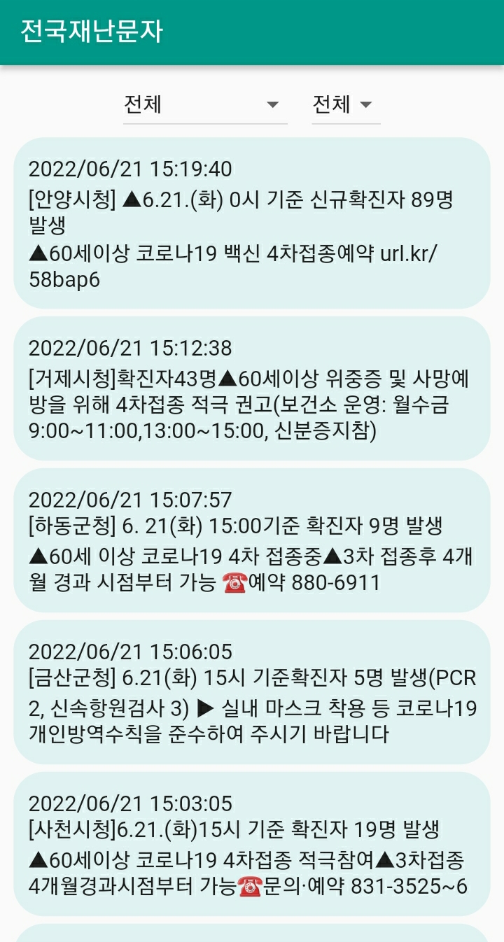 전국재난문자 - 최신순 조회 - Google Play 앱