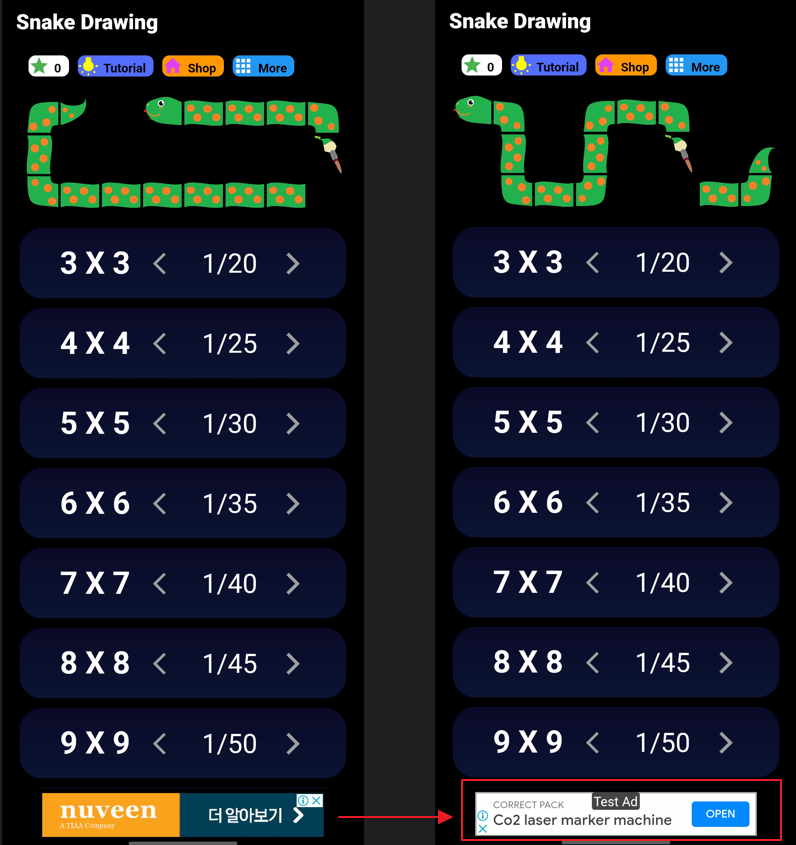 이제 제가 만든 앱에서 테스트 광고가 나오는지 확인해봅시다.