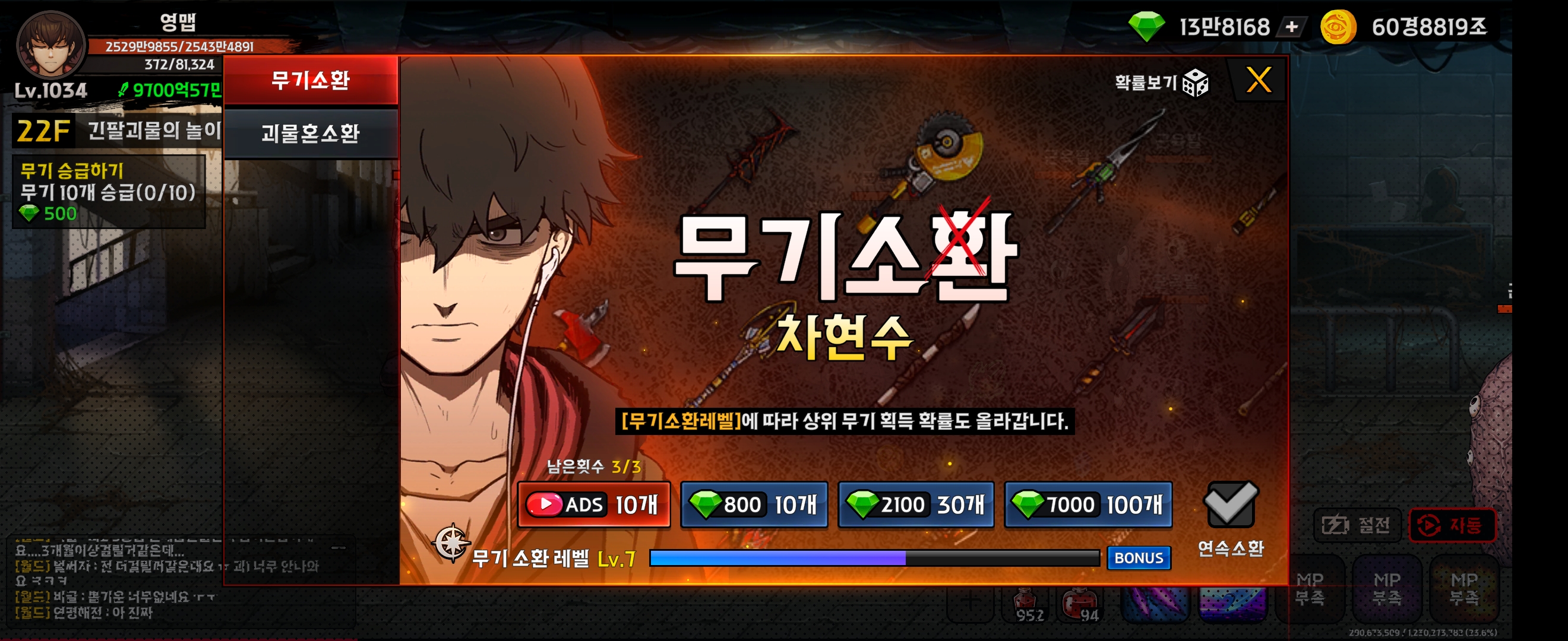 기존의 방치형게임과 별반 다르지 않습니다. 환생으로 처음부터 시작하는 방법은 아니고 계속 상위 단계로 진출하는 방식입니다.