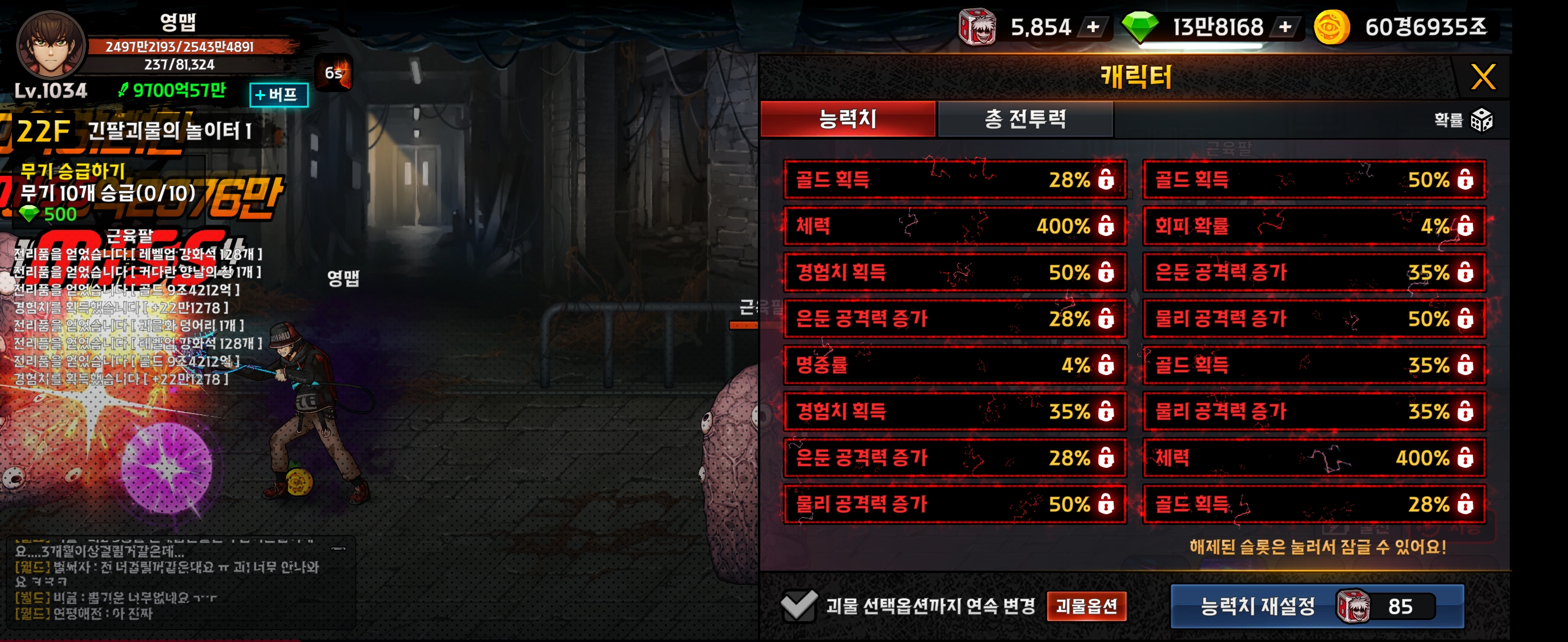 캐릭터의 능력치는 레벨업하면 하나씩 오픈됩니다.