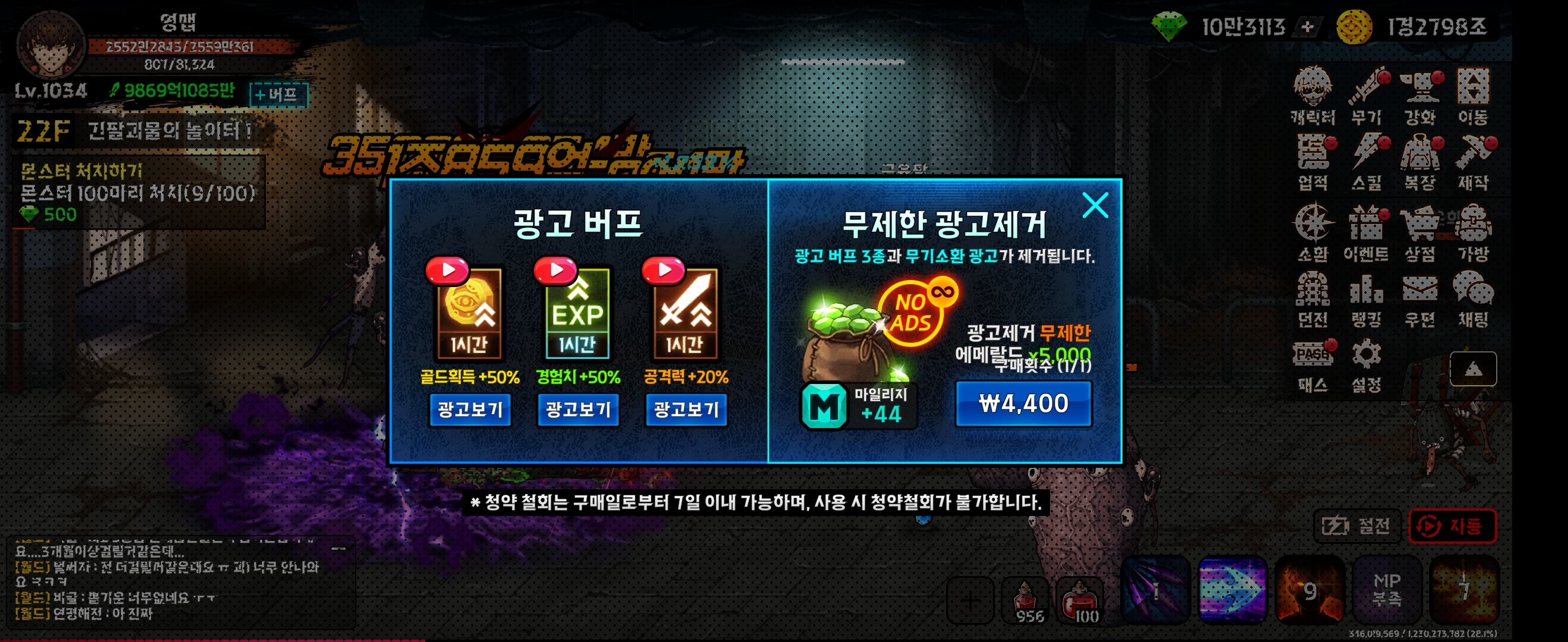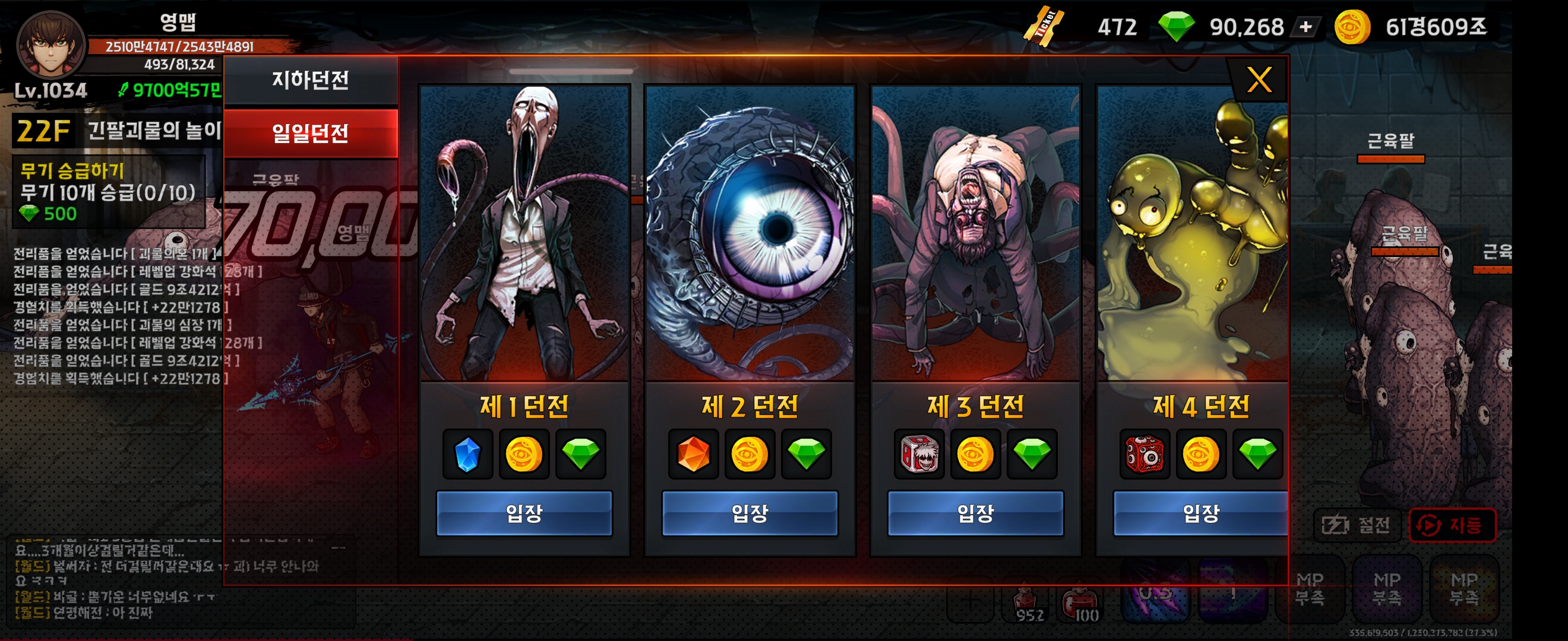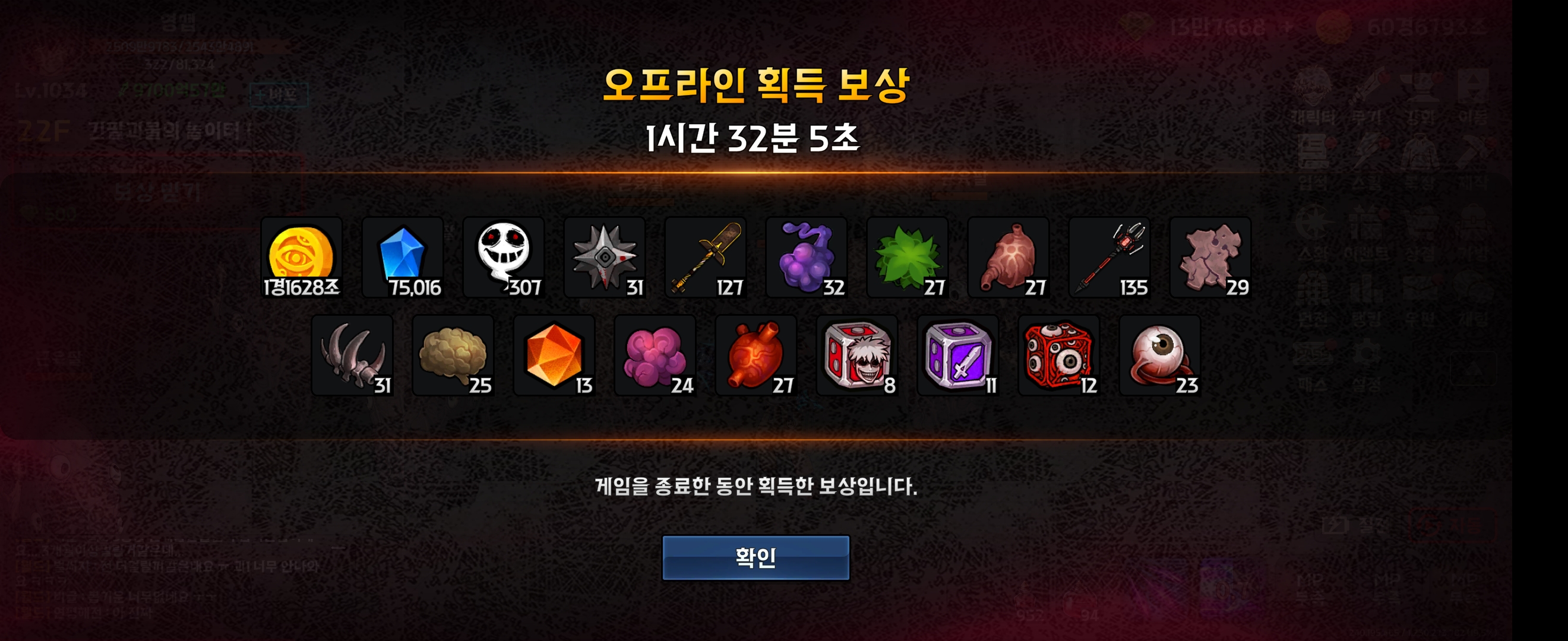 물론 오랜만에 접속하면 오프라인 획득 보상이 있지만 당연히 계속 게임을 켜두는게 유리합니다.