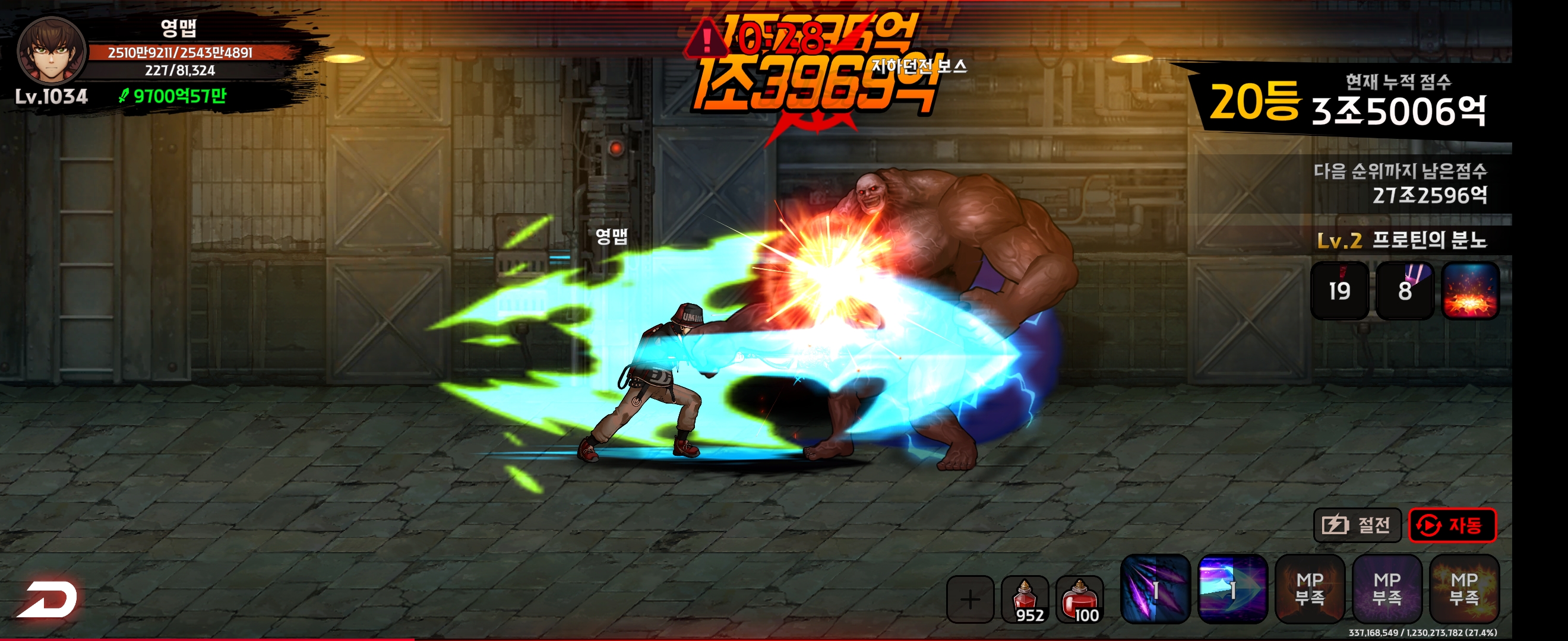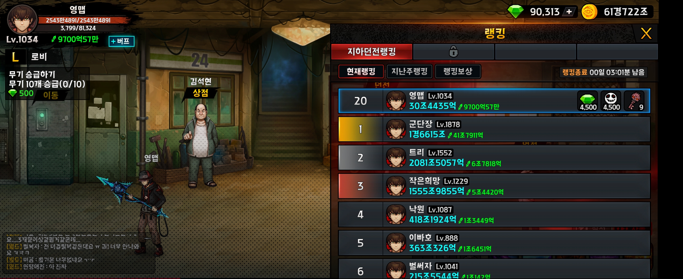제가 속한 2서버는 사용자가 얼마없어서인지 별다른 노력없이 24시간 켜두기만 했는데 던전 순위가 20위로 상위권을 유지하고 있습니다.
