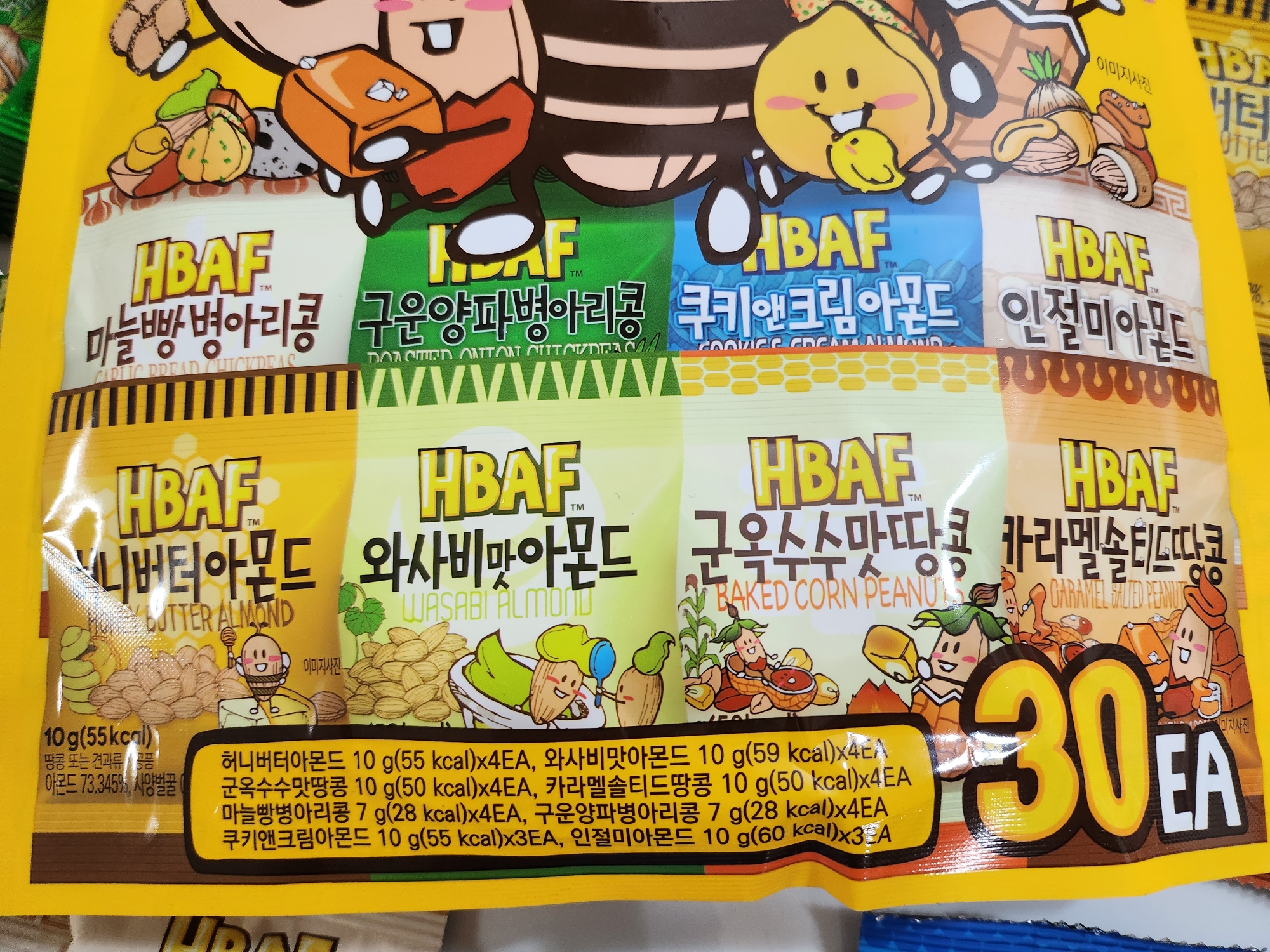 8종류 아몬드가 30팩이 들어있고 가갹은 12,000원 정도 입니다.