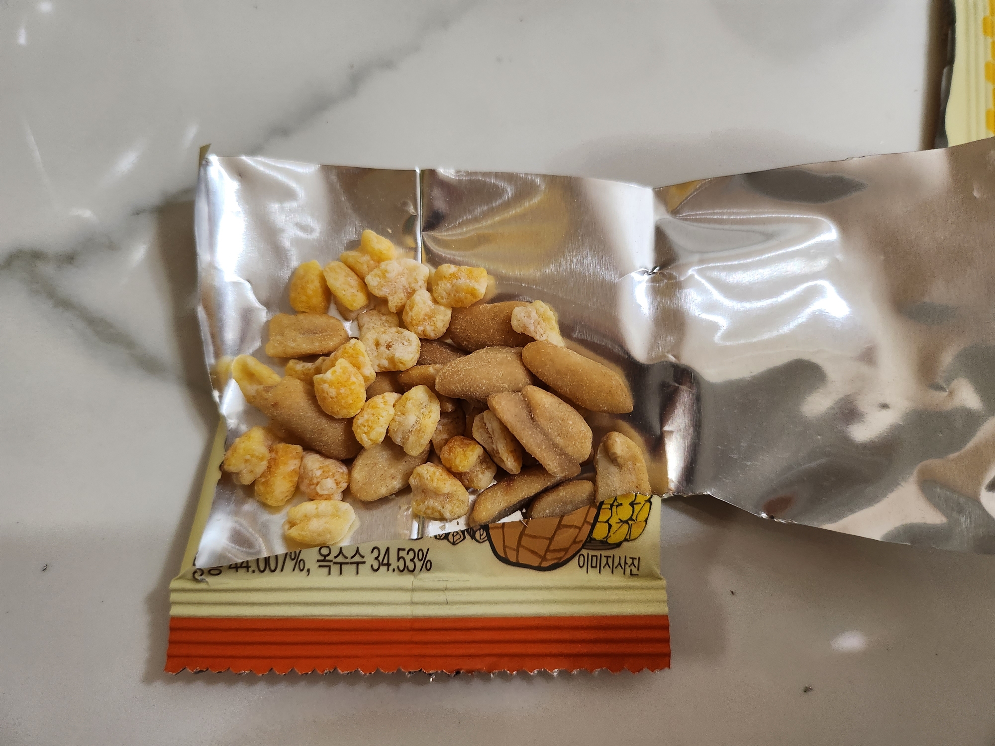어릴 때 먹던 밭두렁(?)이 생각나는 군옥수수맛땅콩입니다.