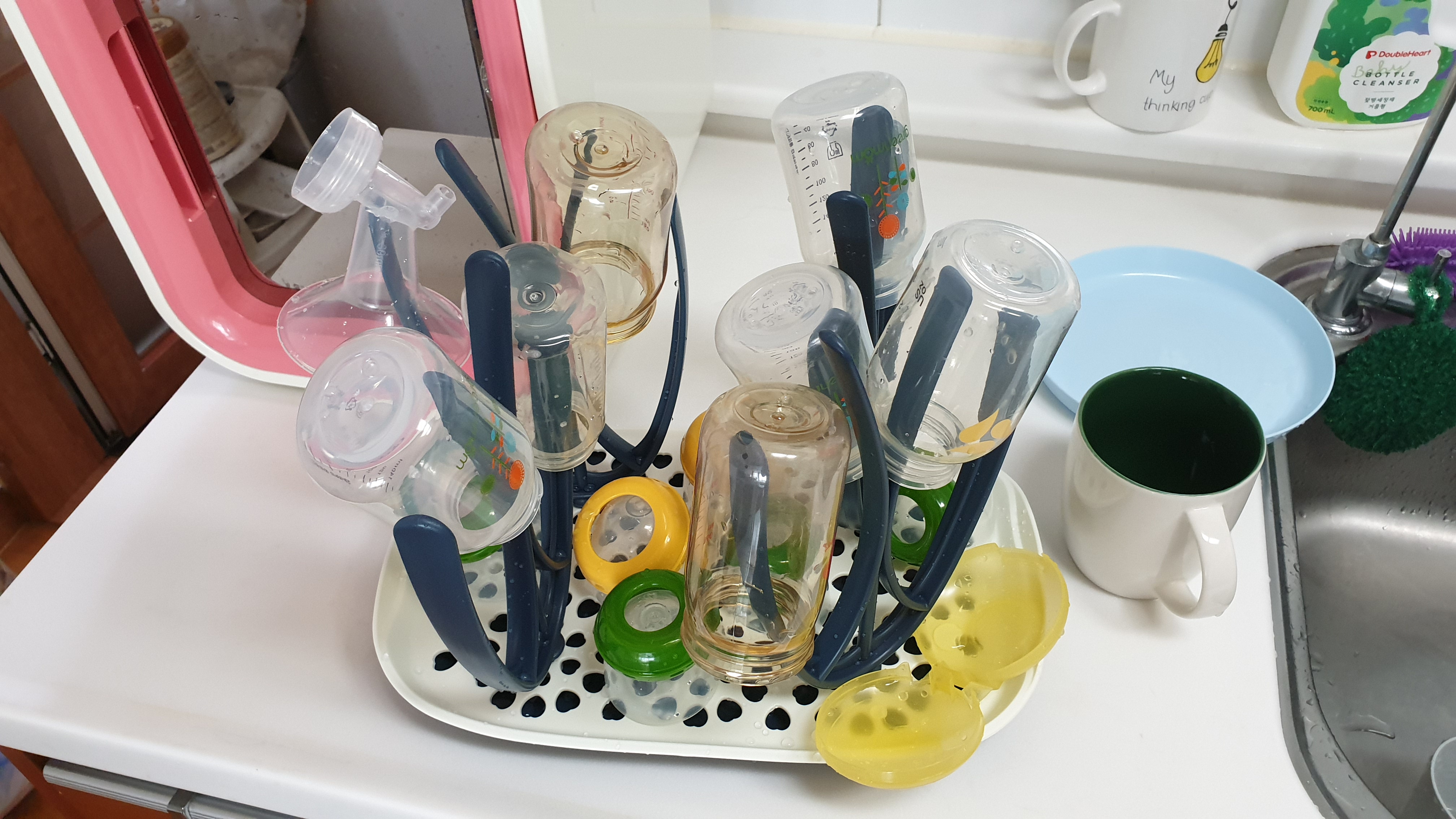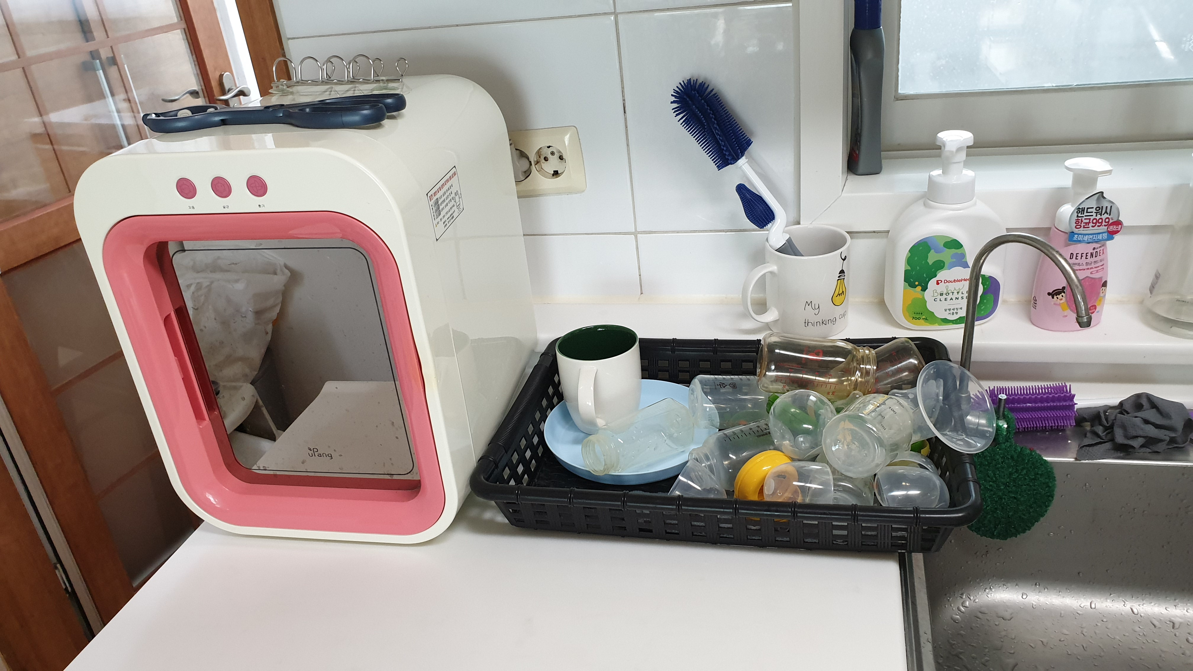 그동안 젖병 건조 없이 소독기에 넣었다.
