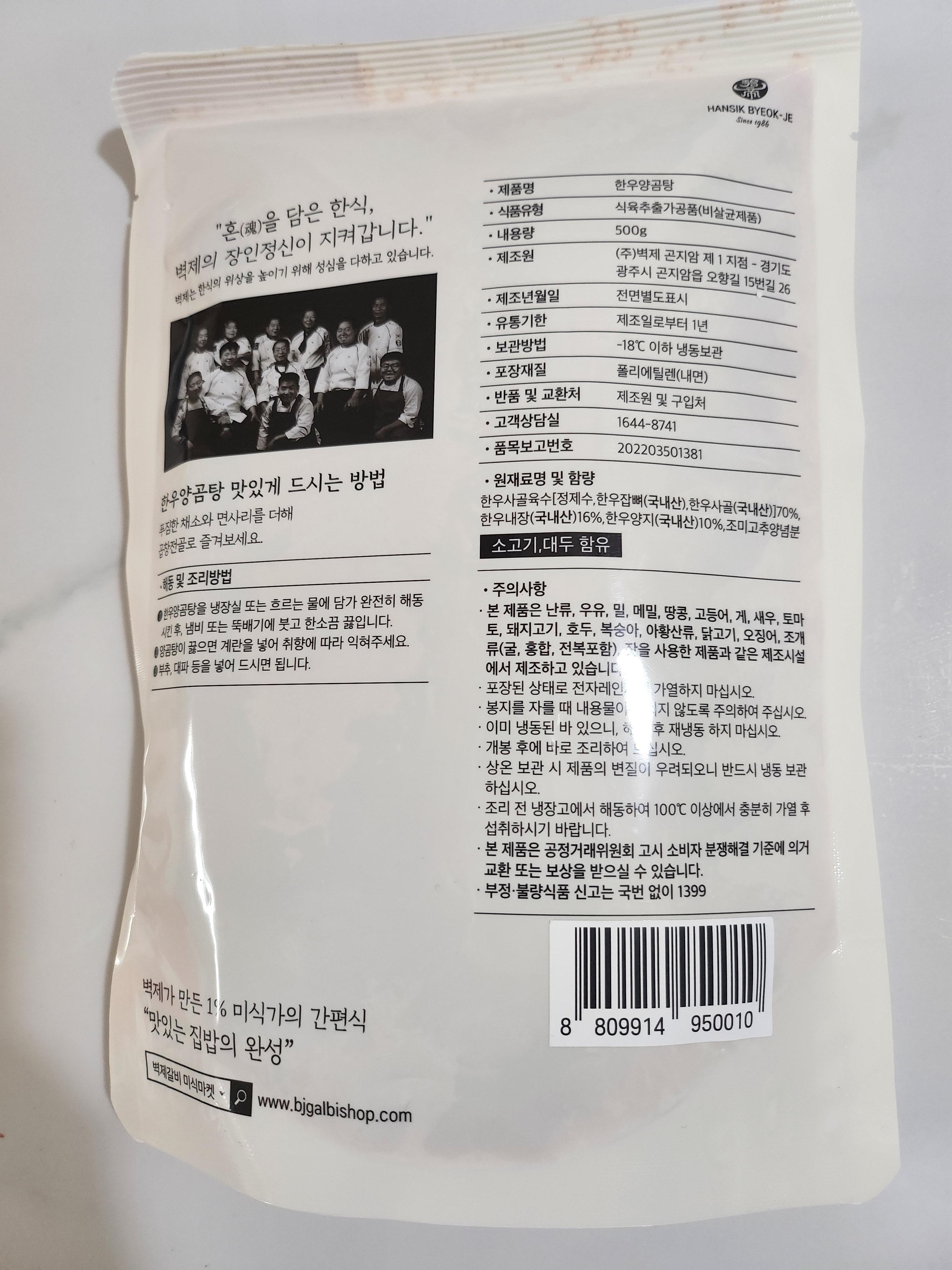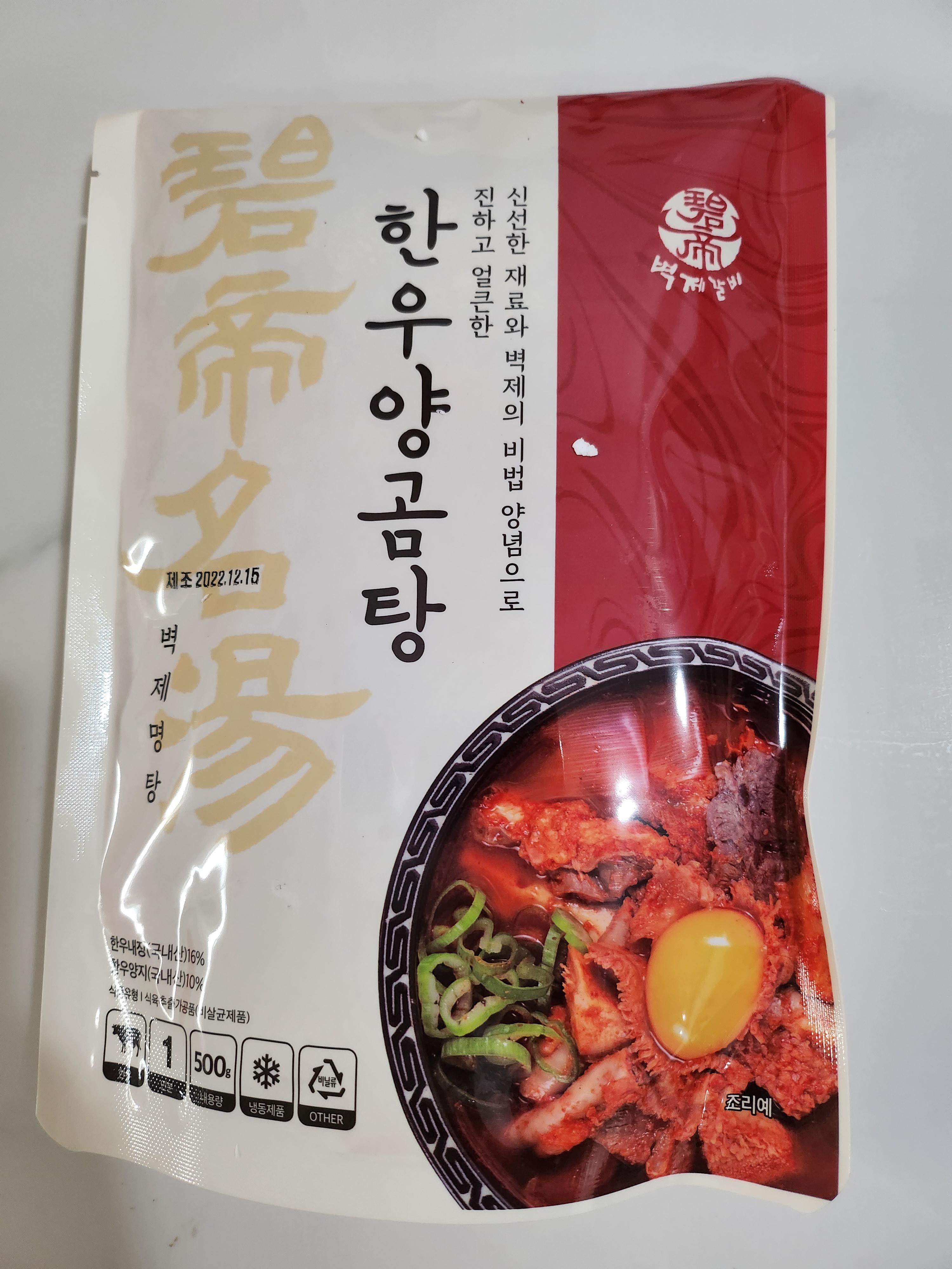벽재갈비 한우 양곰탕 냉동 제품을 먹었습니다.