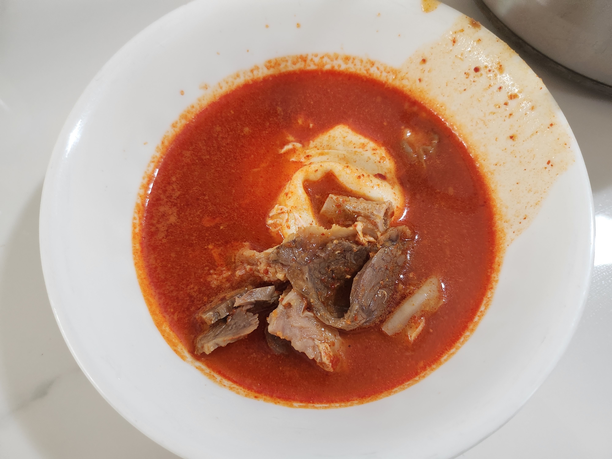 칼칼한 국물에 계란을 넣어먹으니 잘 어울립니다.