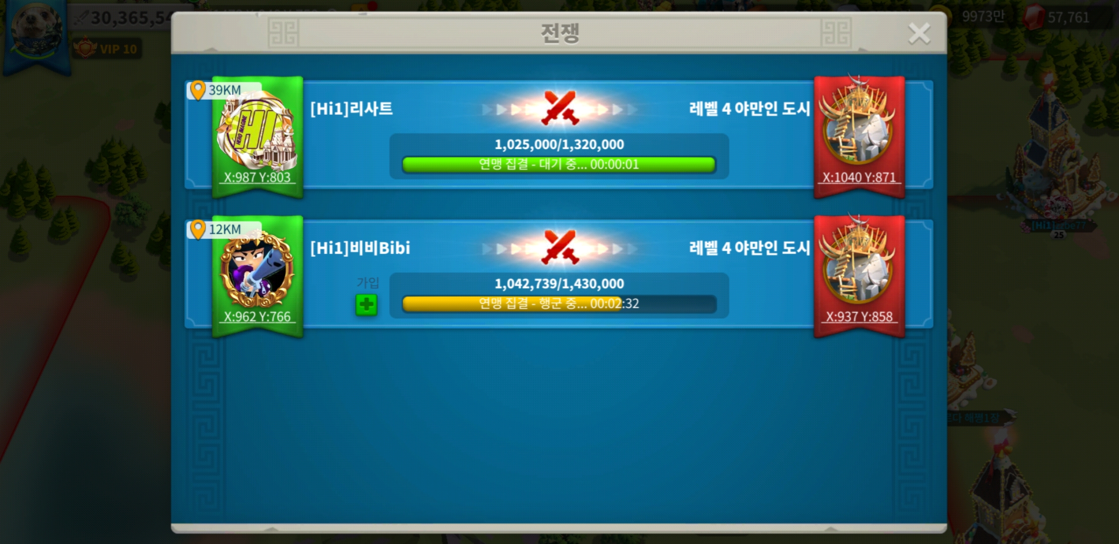 도시는 혼자서 공략할 수 없고 연맹원의 성에 집결하여 공략한다.