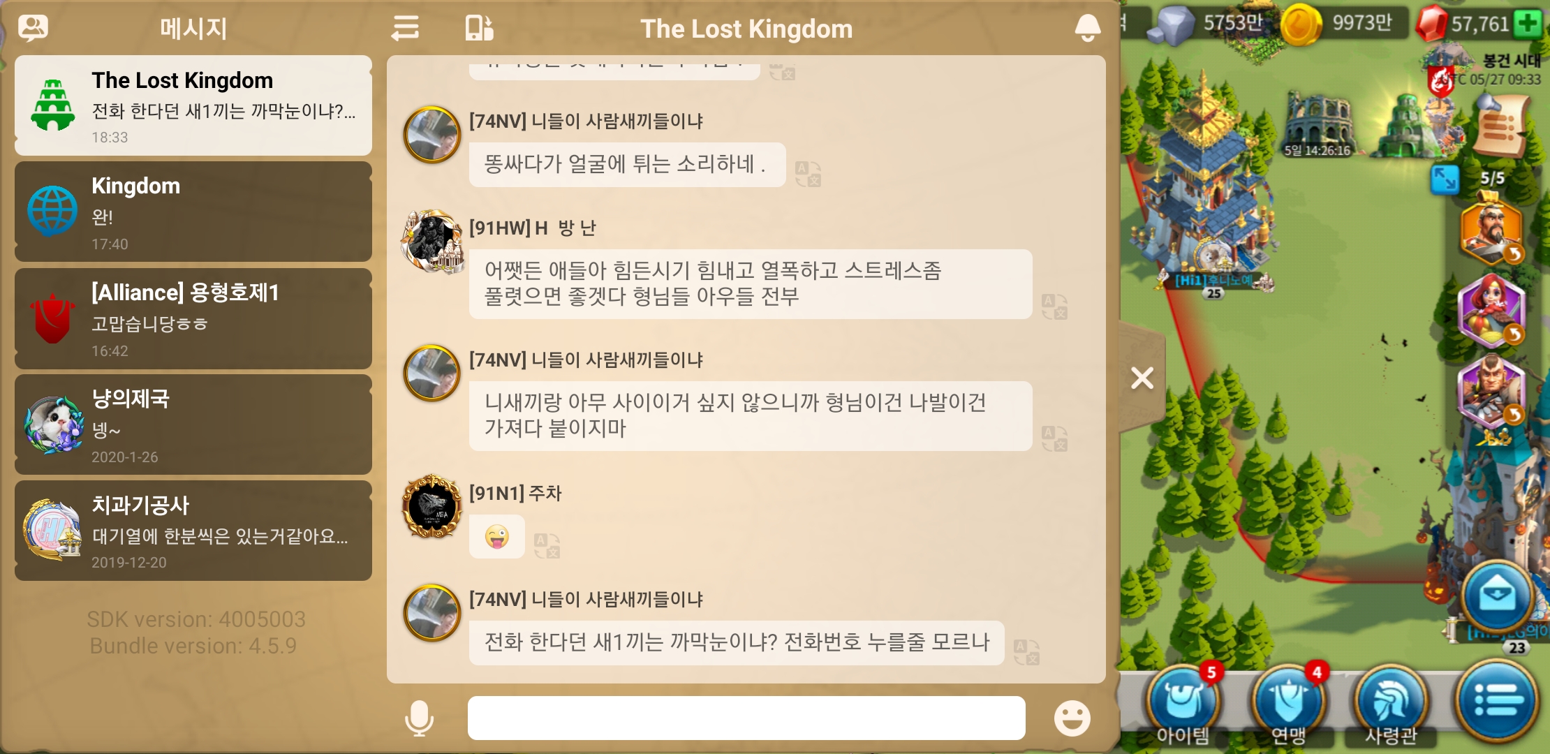 서버끼리의 전쟁은 매우 치열하기 때문에 전쟁 중에 왕국 채팅창에선 좋은 말을 보기 힘들다.