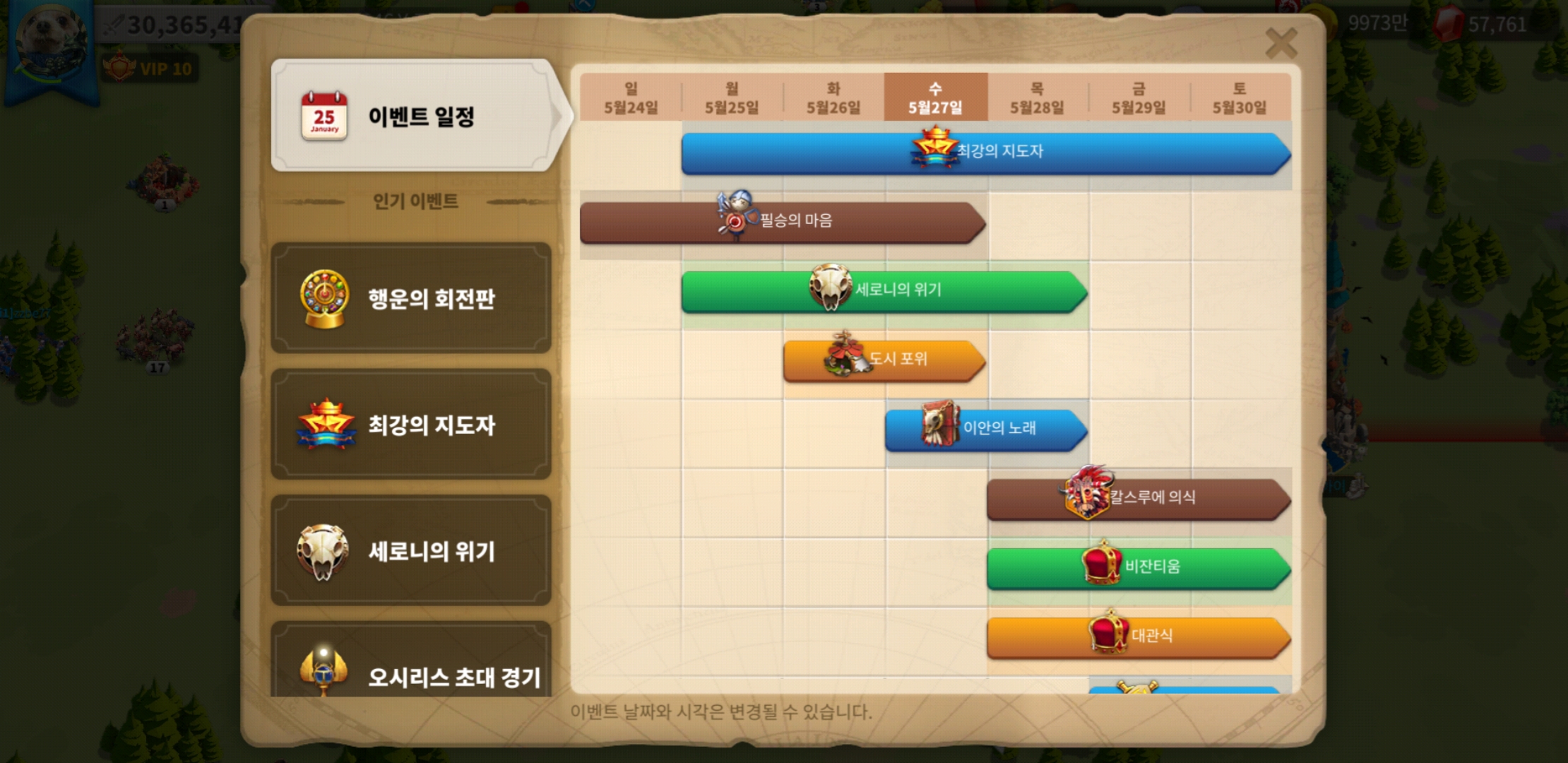 그 외 여러 가지 재미있는 이벤트와 2주에 한 번씩 타 연맹과 전쟁을 하는 미니게임도 있다.