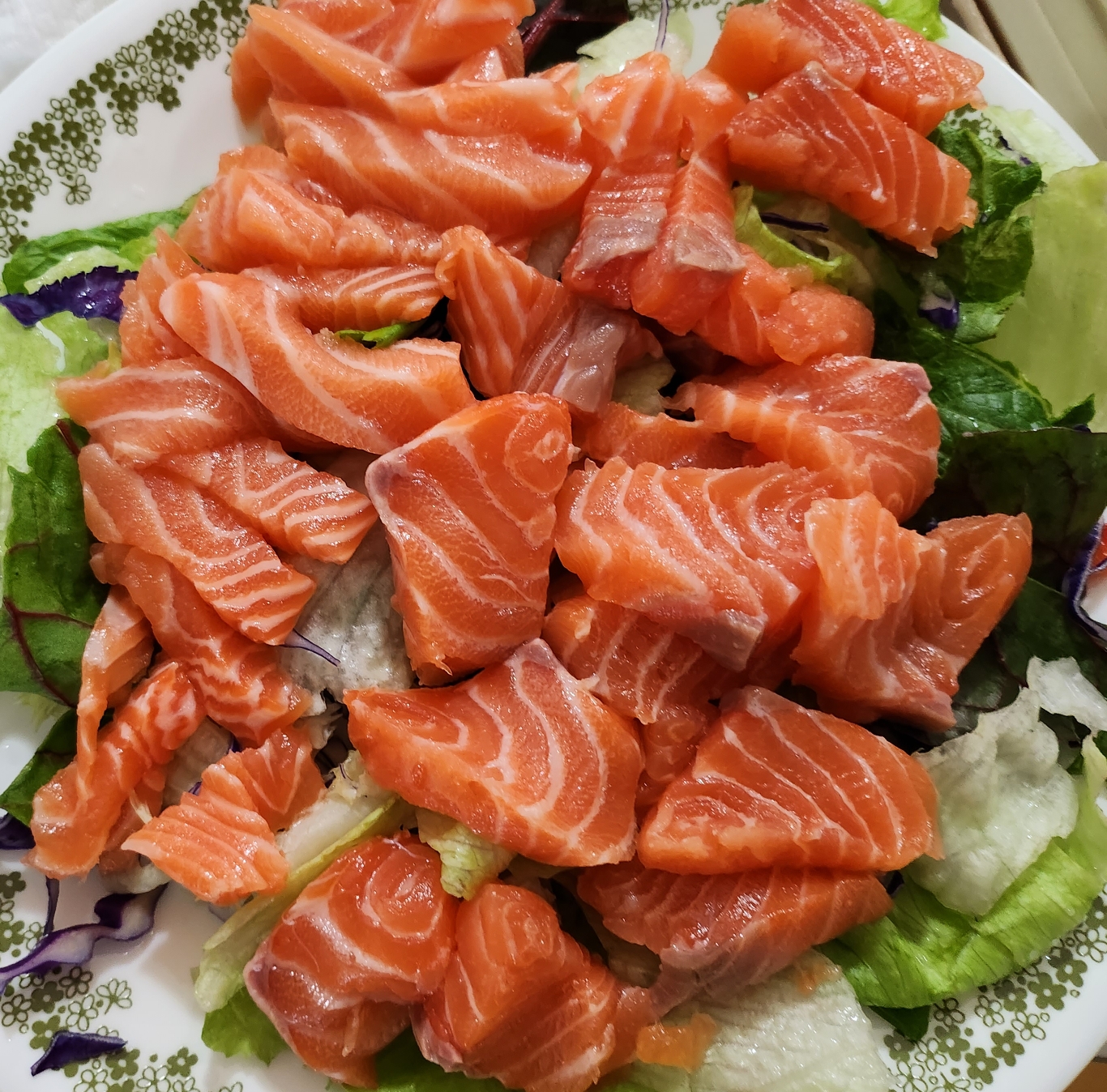 트레이더스 연어는 냉장보관 하다가 그냥 회로 썰어먹어도 고소하고 맛이 좋습니다.