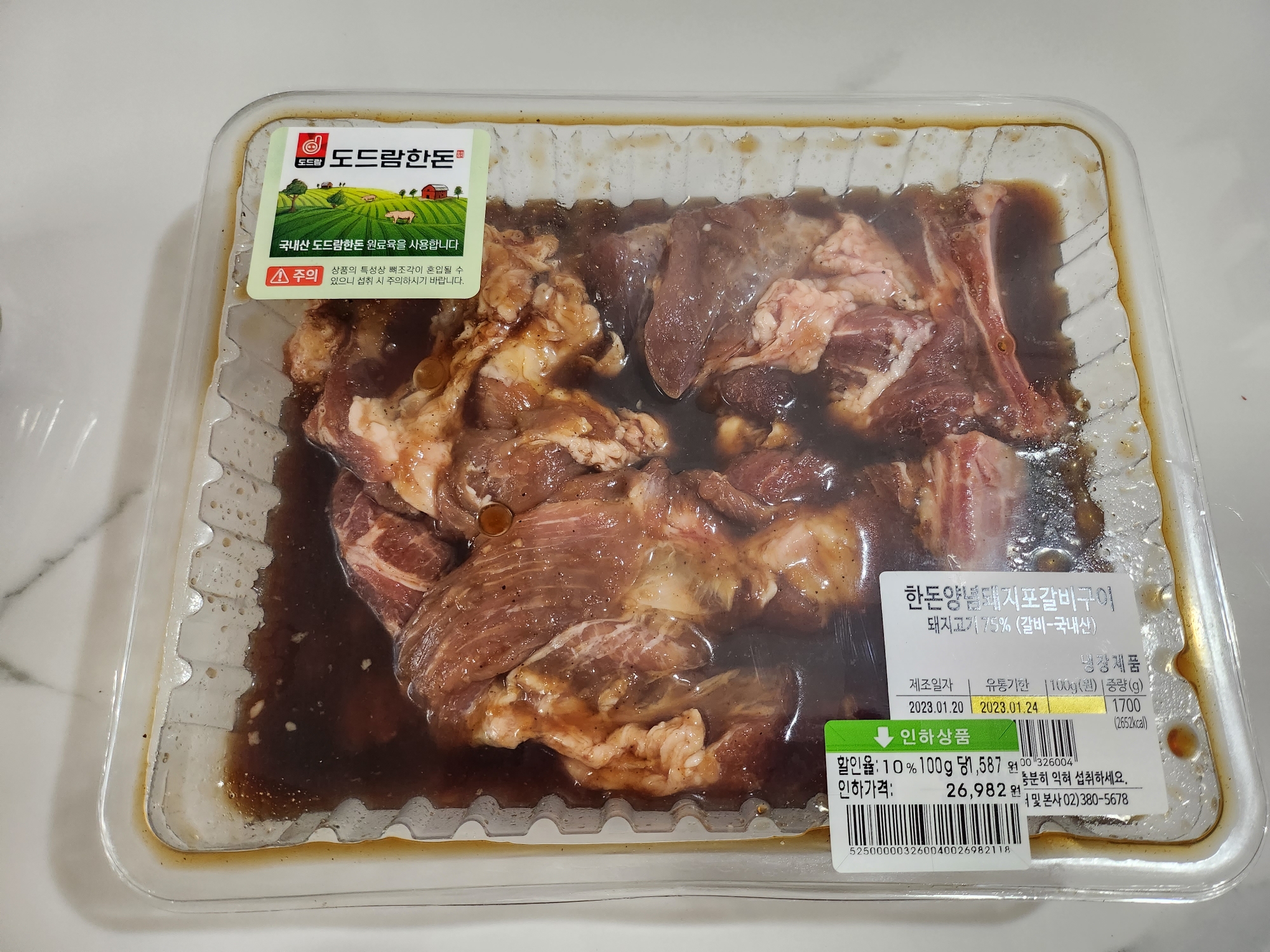 양념돼지갈비를 1700g을 26,982원에 이마트 트레이더스에서 구입했습니다.
