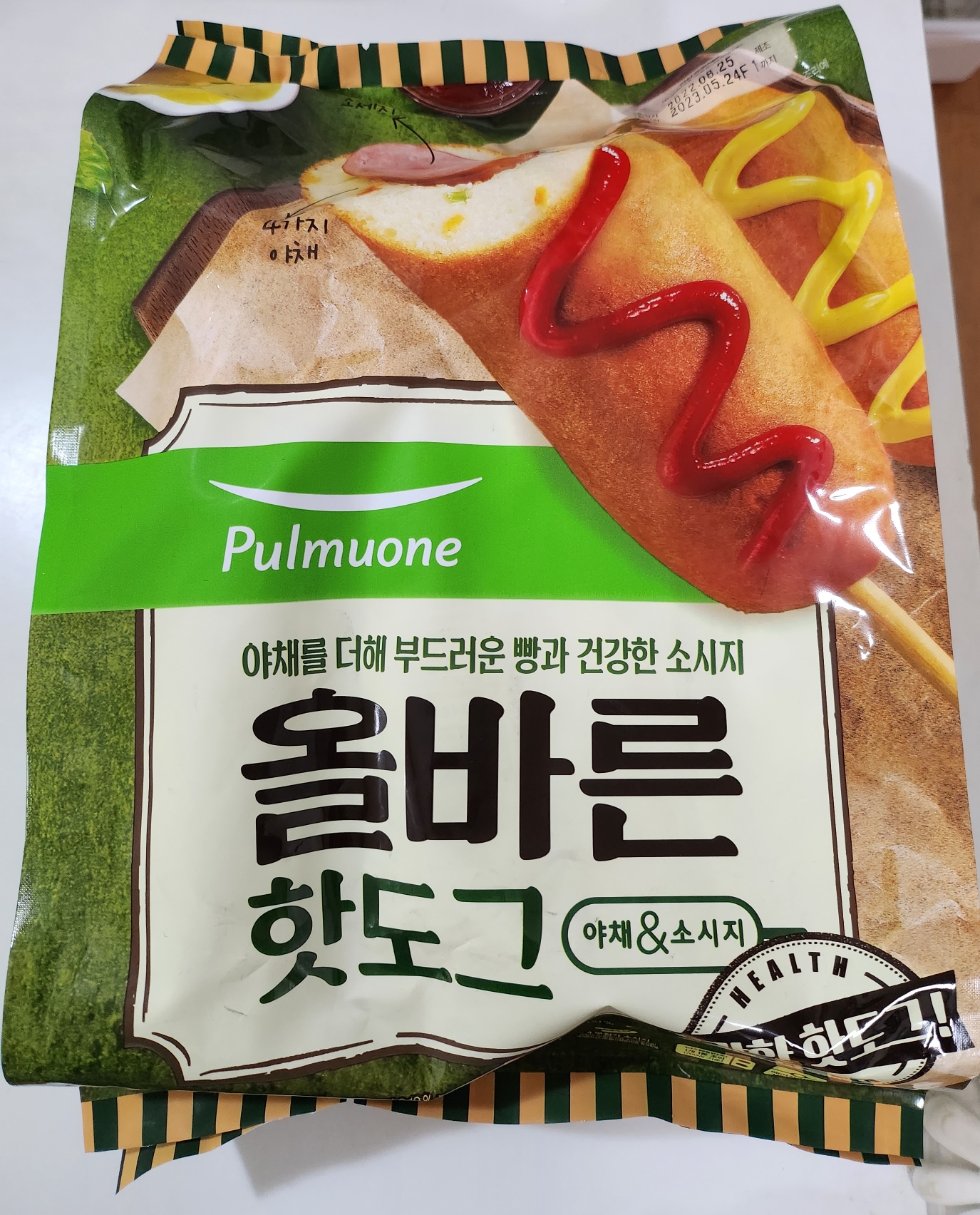 풀무원의 올바른 핫도그를 처음 먹어보았습니다.