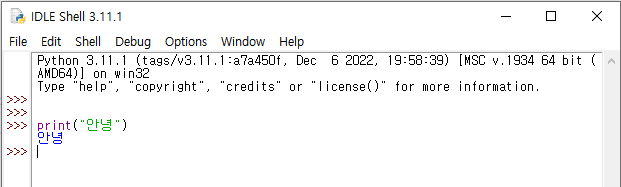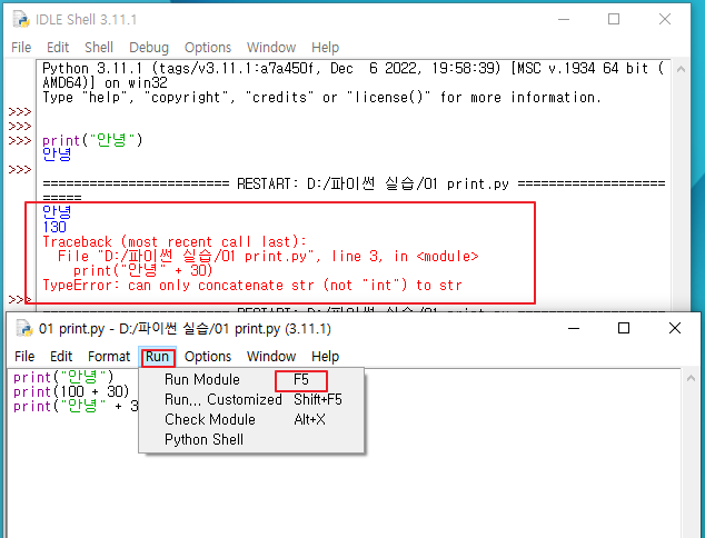 F5를 누르면 Shell에 실행 결과가 나옵니다.
