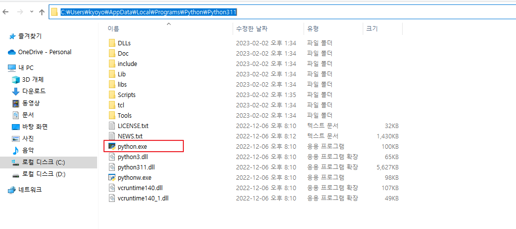 드디어 파이썬이 설치된 경로를 찾았습니다.