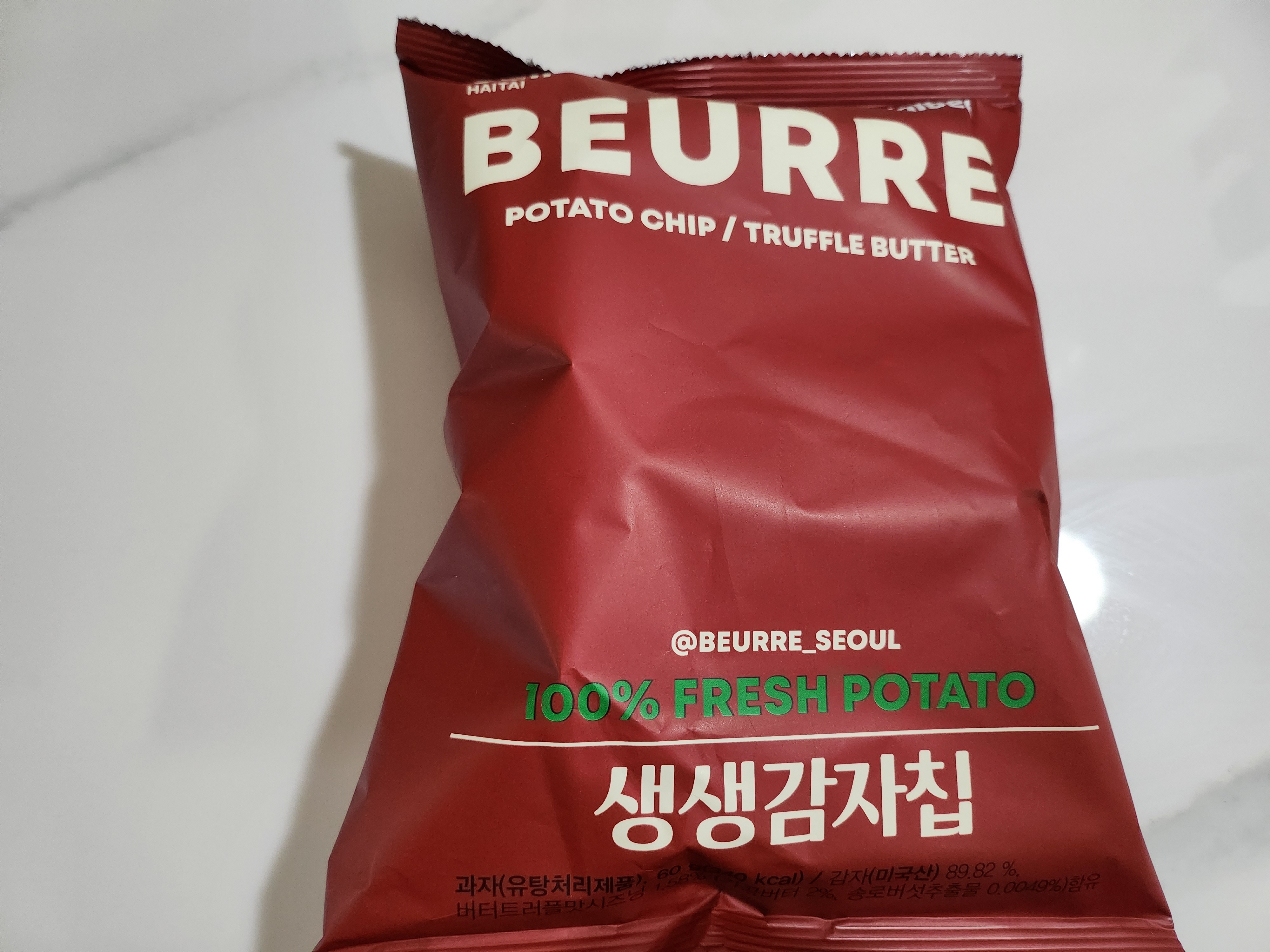버터맥주로 유명한 블랑제리뵈르에서 해태와 콜라보로 트러플버터 생생감자칩을 출시했습니다.