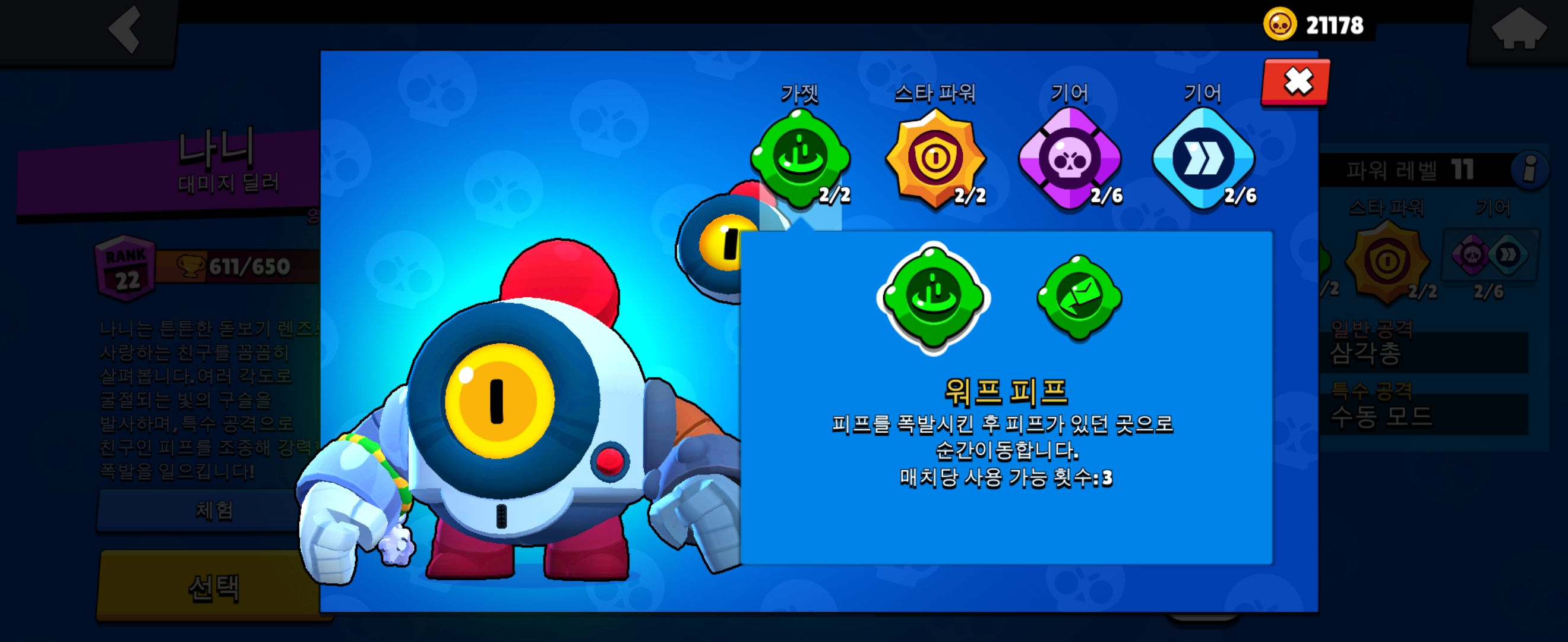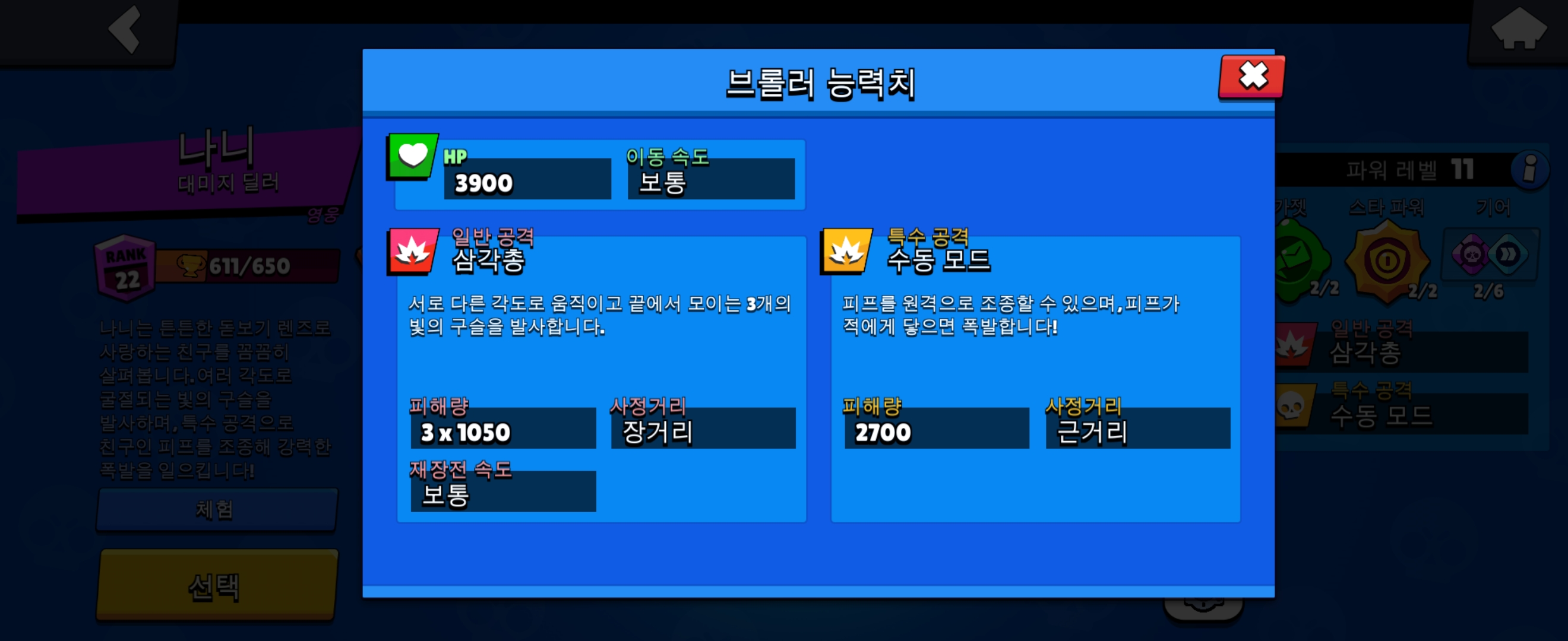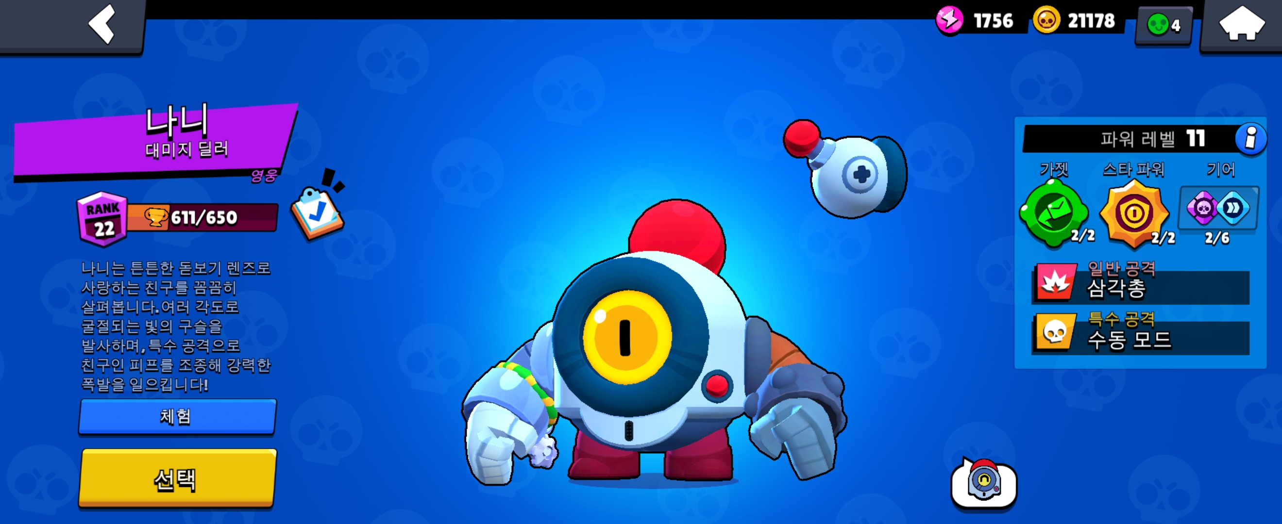 브롤스타즈 대미지 딜러 영웅 브롤러로 나니를 소개합니다.