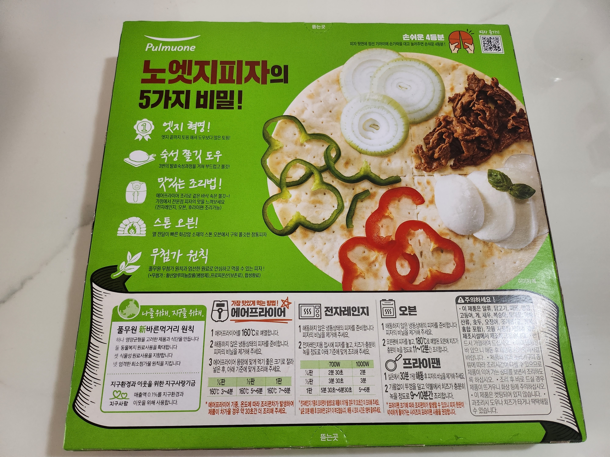 에어프라이어에 종이호일을 올리고 피자 비닐을 벗겼습니다.