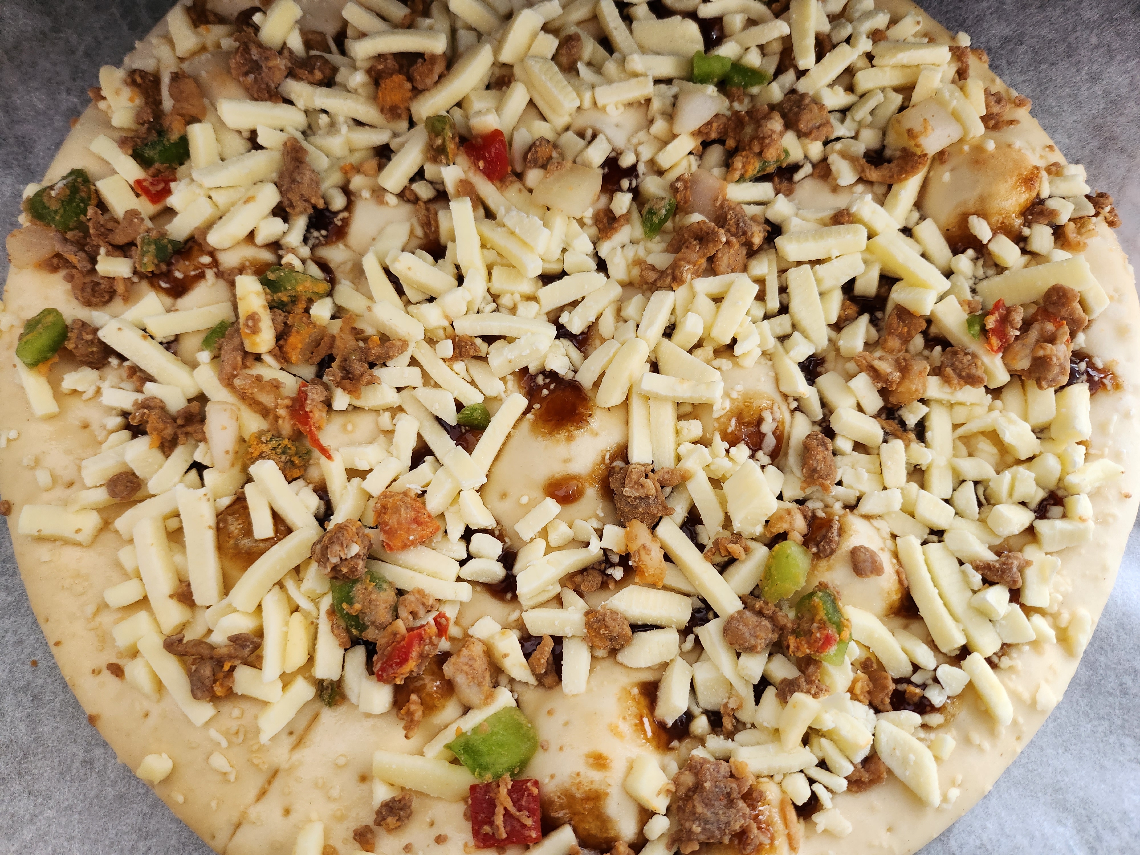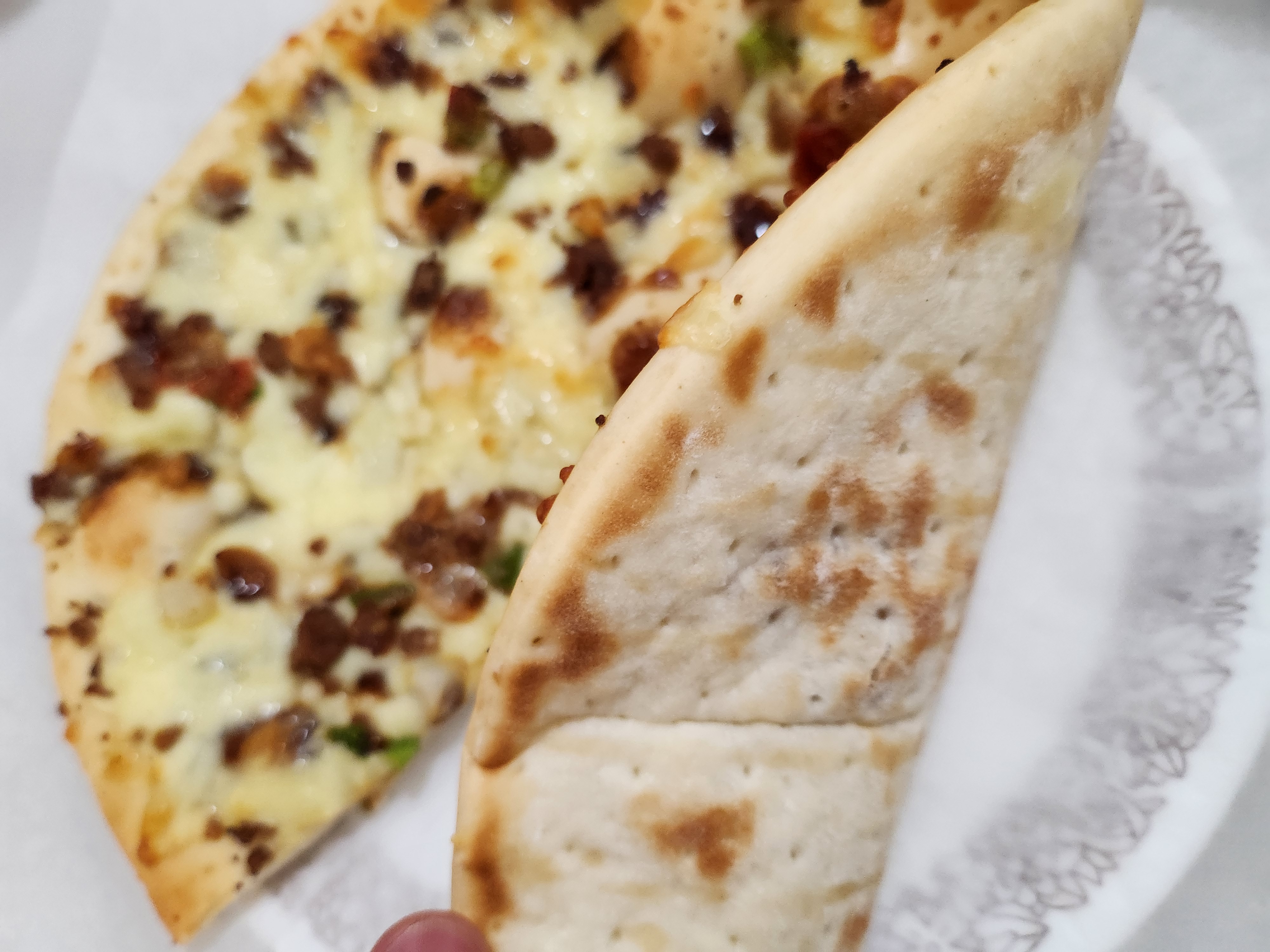 토핑을 엣지 부분까지 열심히 채우려는 흔적은 보이지만 살짝 비어있는 부분이 있습니다.