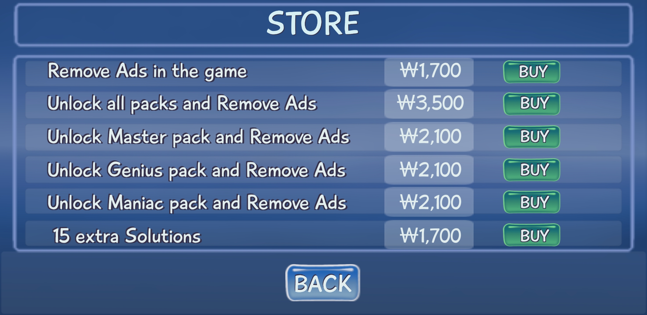 나머지 MASTER, GENIUS, MANIAC 카테고리는 Store에서 구입해야 플레이할 수 있다.