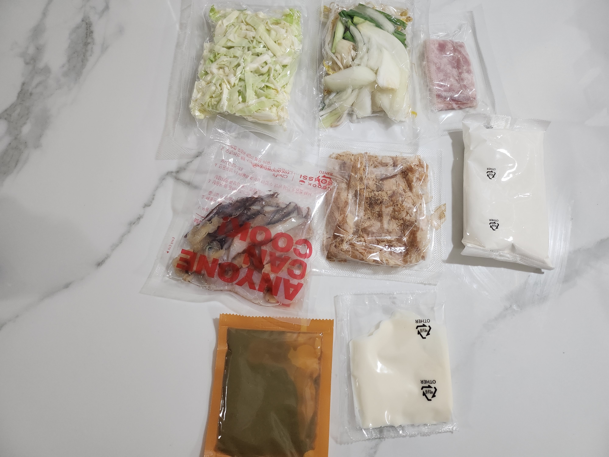 오징어 새우 바지락 해산물이 따로 포장되어있습니다.