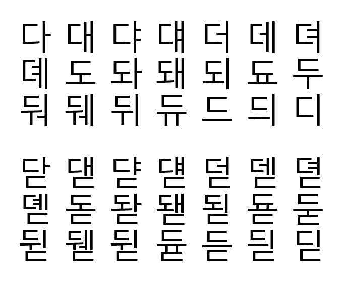 다 대 댜 댸 더 데 뎌 뎨 디 와 같은 글자이고