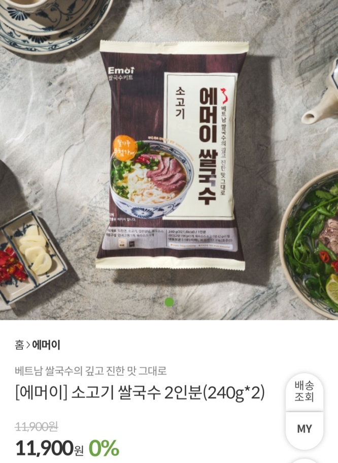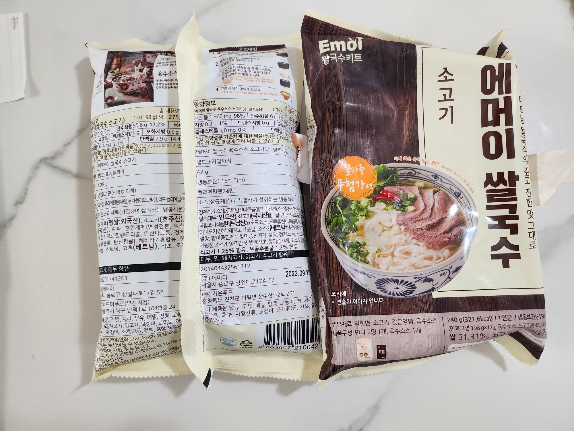 오아시스 마켓에서 에머이 소고기 쌀국수를 구매했습니다.