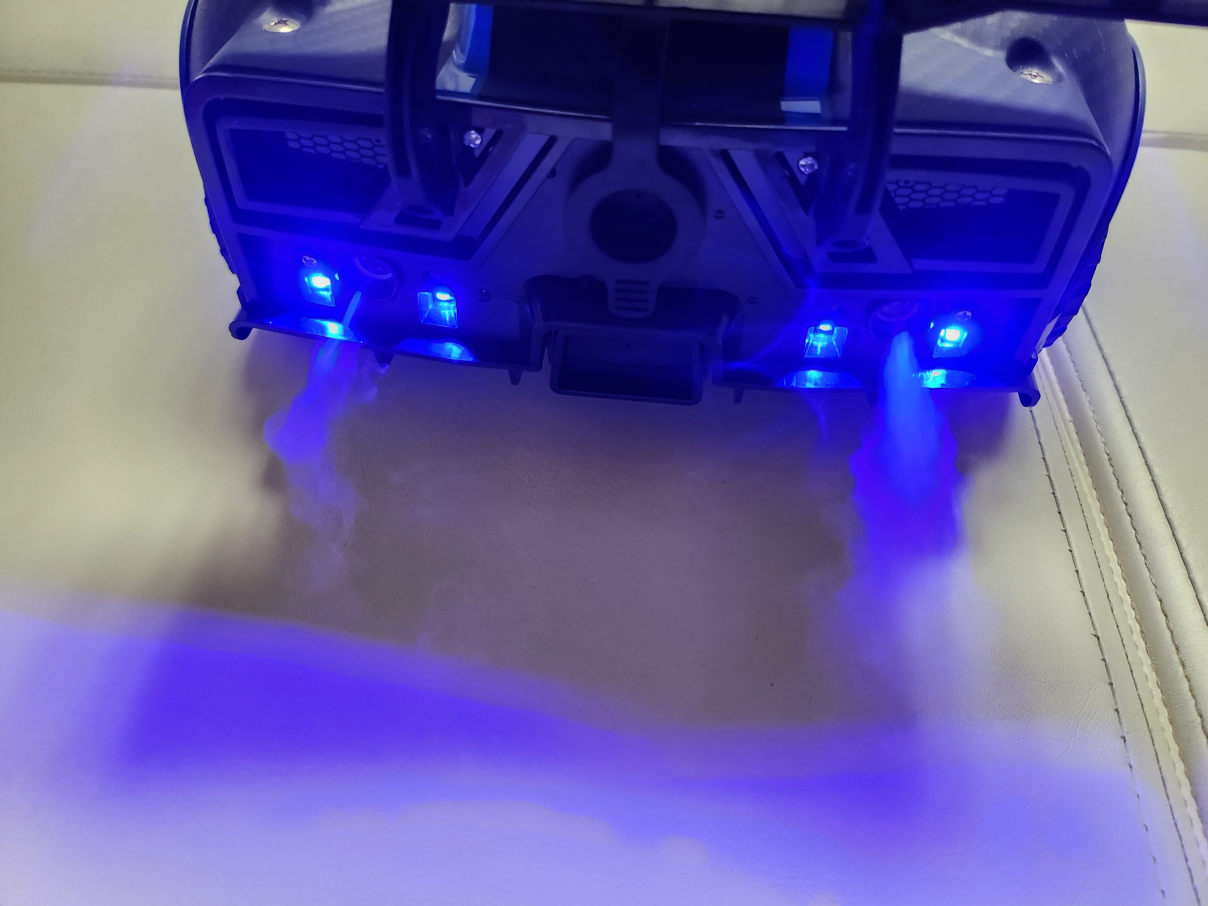 왼쪽 검지로 버튼을 누르면 증기와 함께 불빛이 들어옵니다.