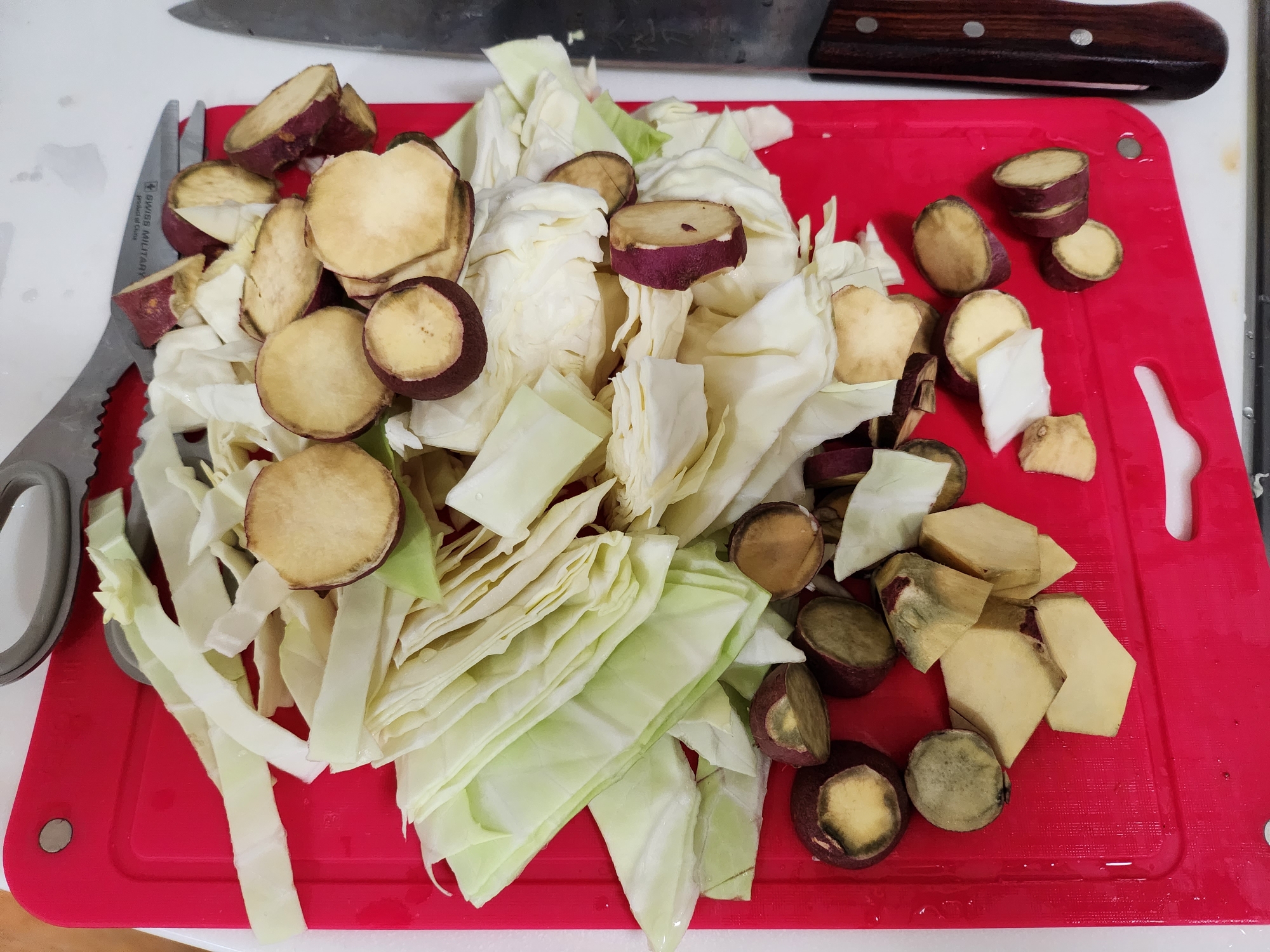 제품에는 야채가 포함되어있지 않아 양배추와 고구마를 준비했습니다.