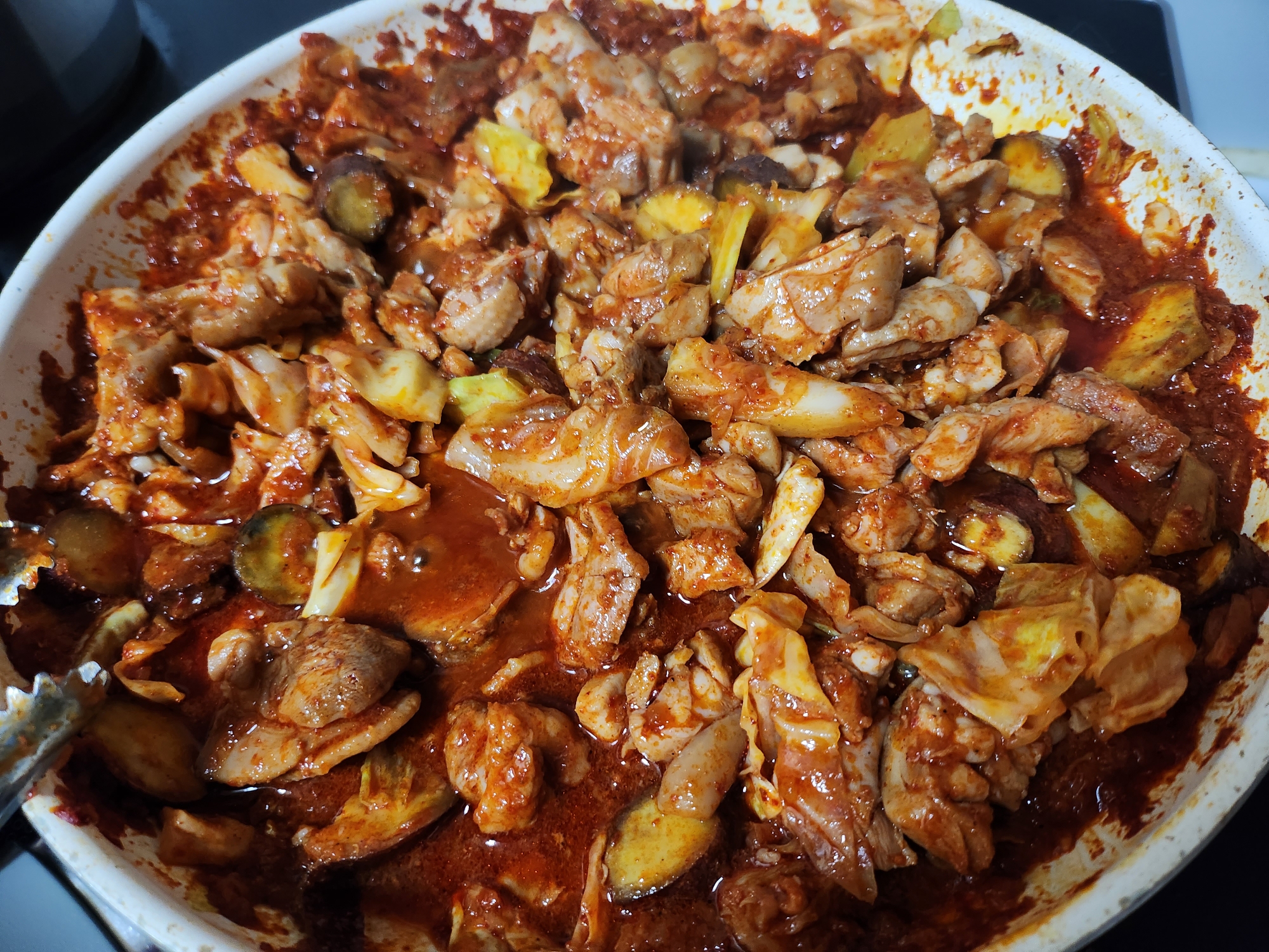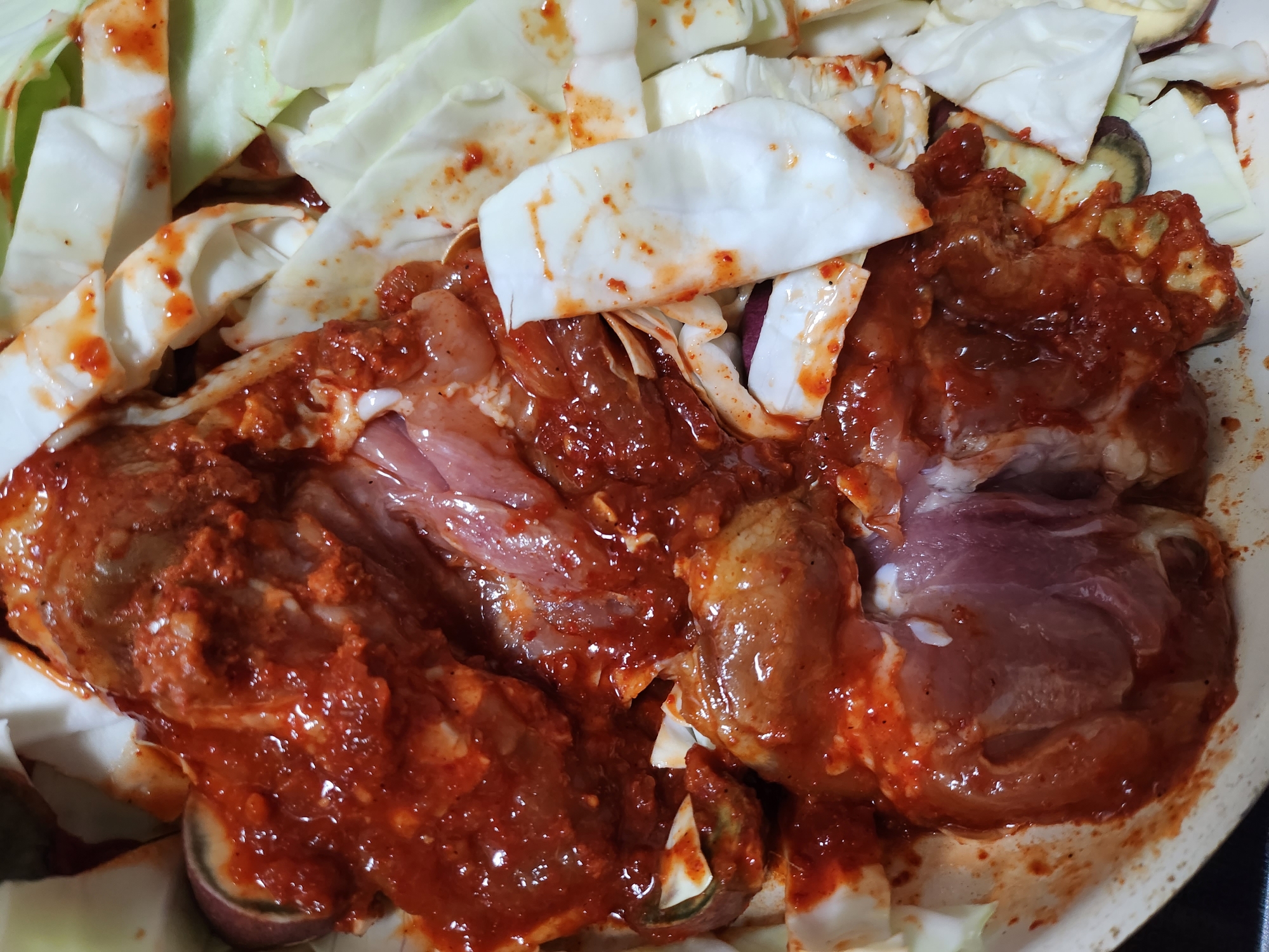 그래야 식용류 없어도 고기에서 기름이 나오면서 맛있게 닭갈비를 요리할 수 있습니다.