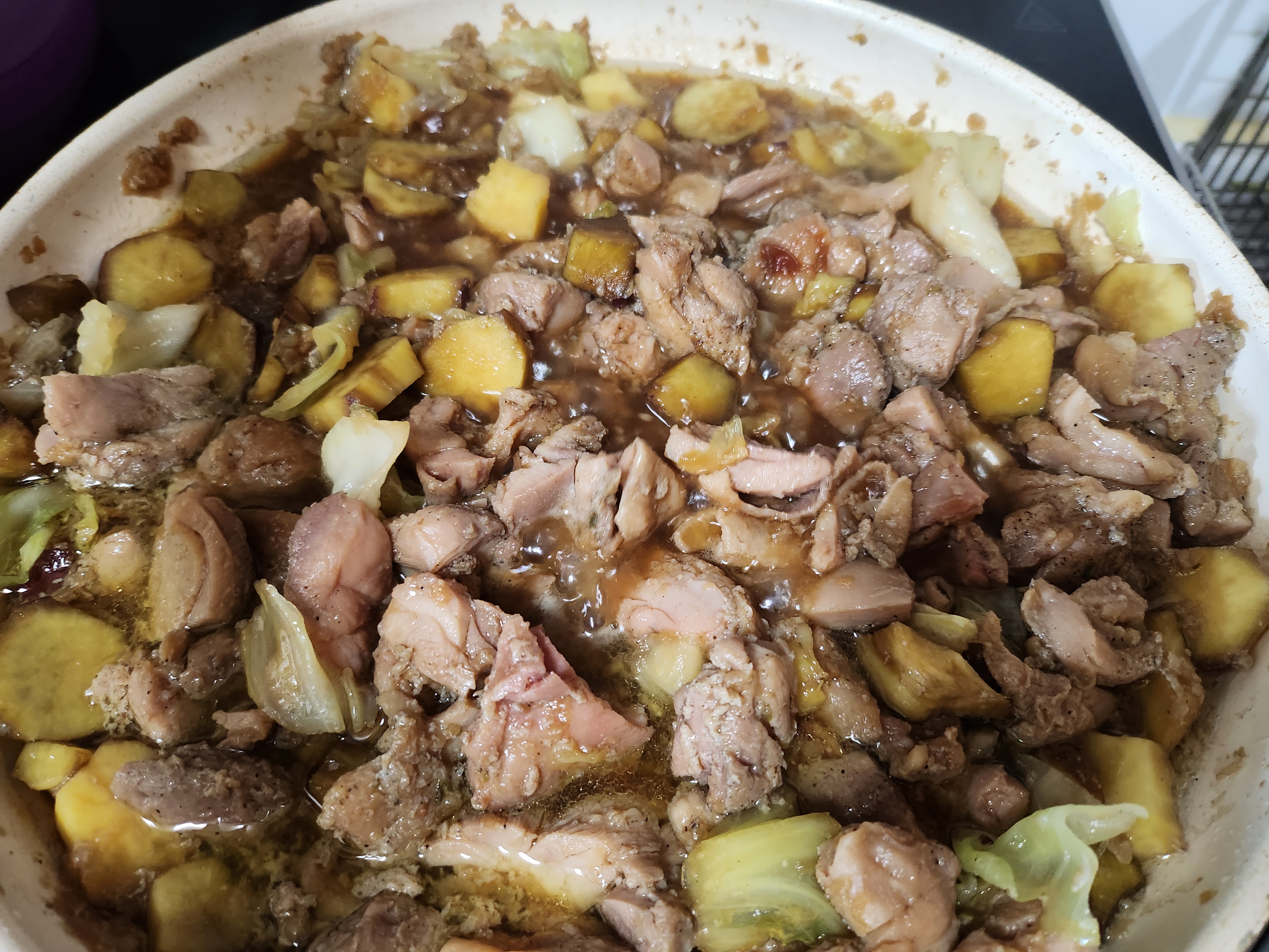 양배추와 고구마를 넣어주어 중불에 조리합니다.