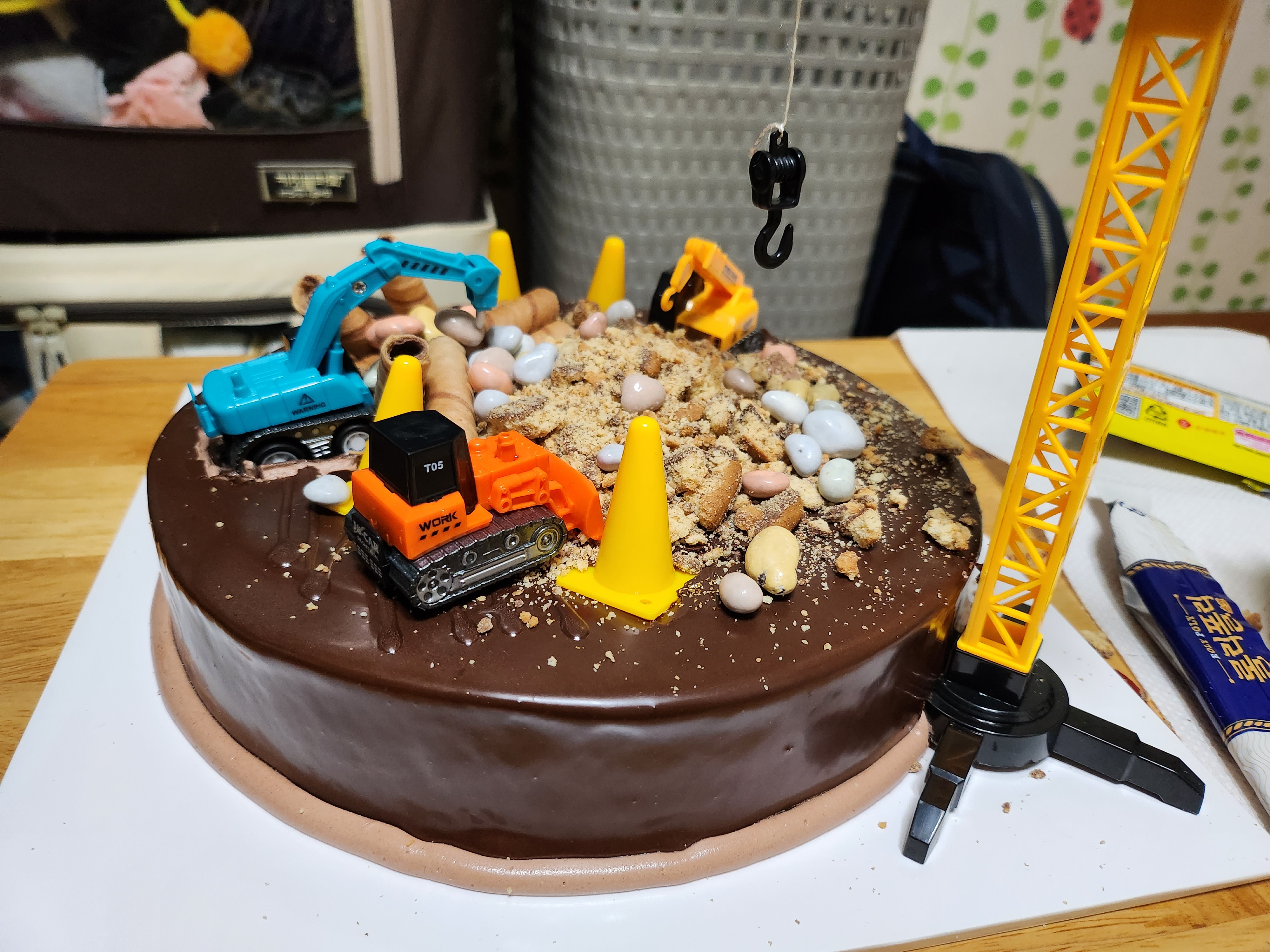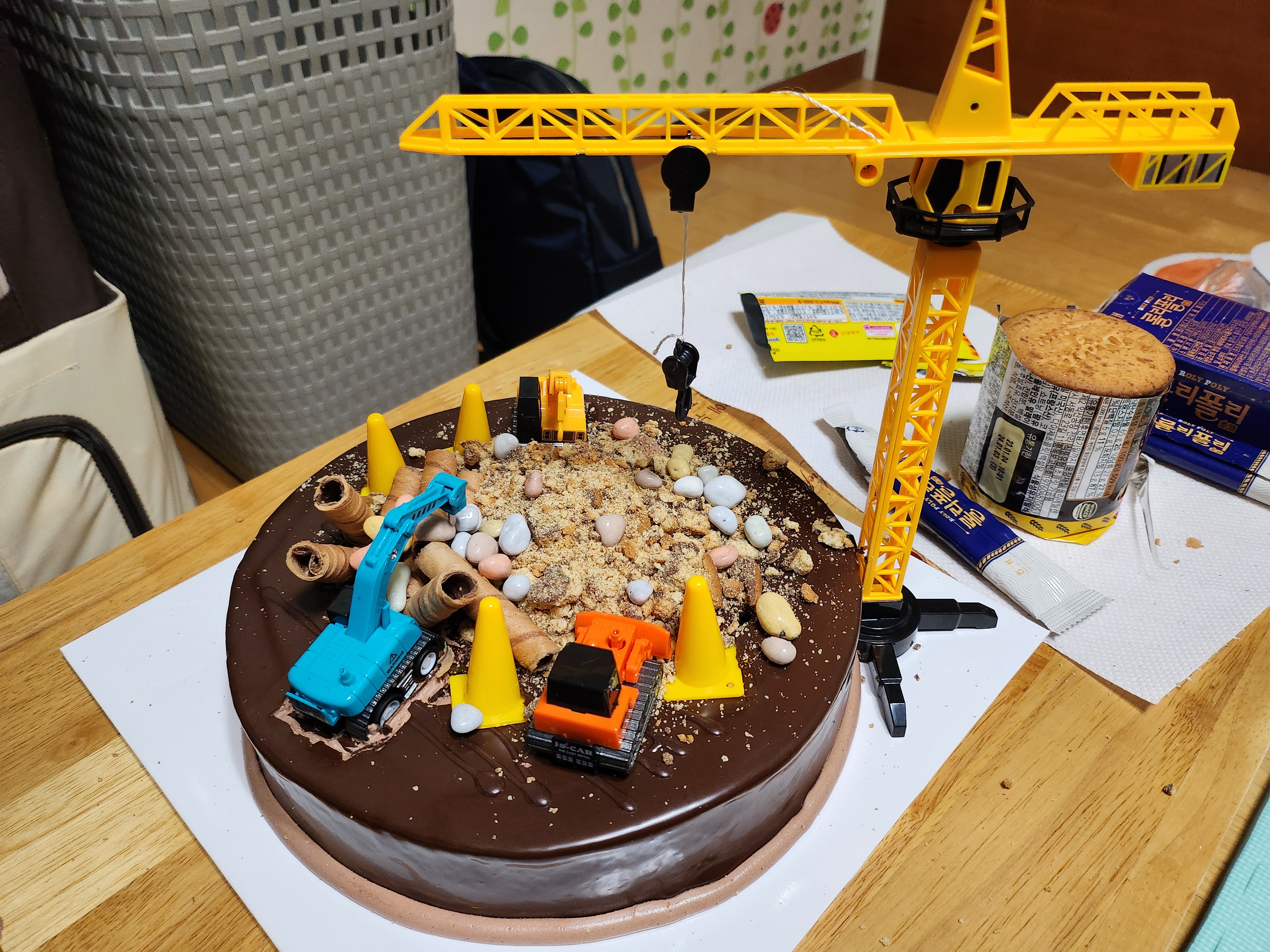 중장비를 좋아하는 4살 아들과 즐거운 생일을 보냈습니다.