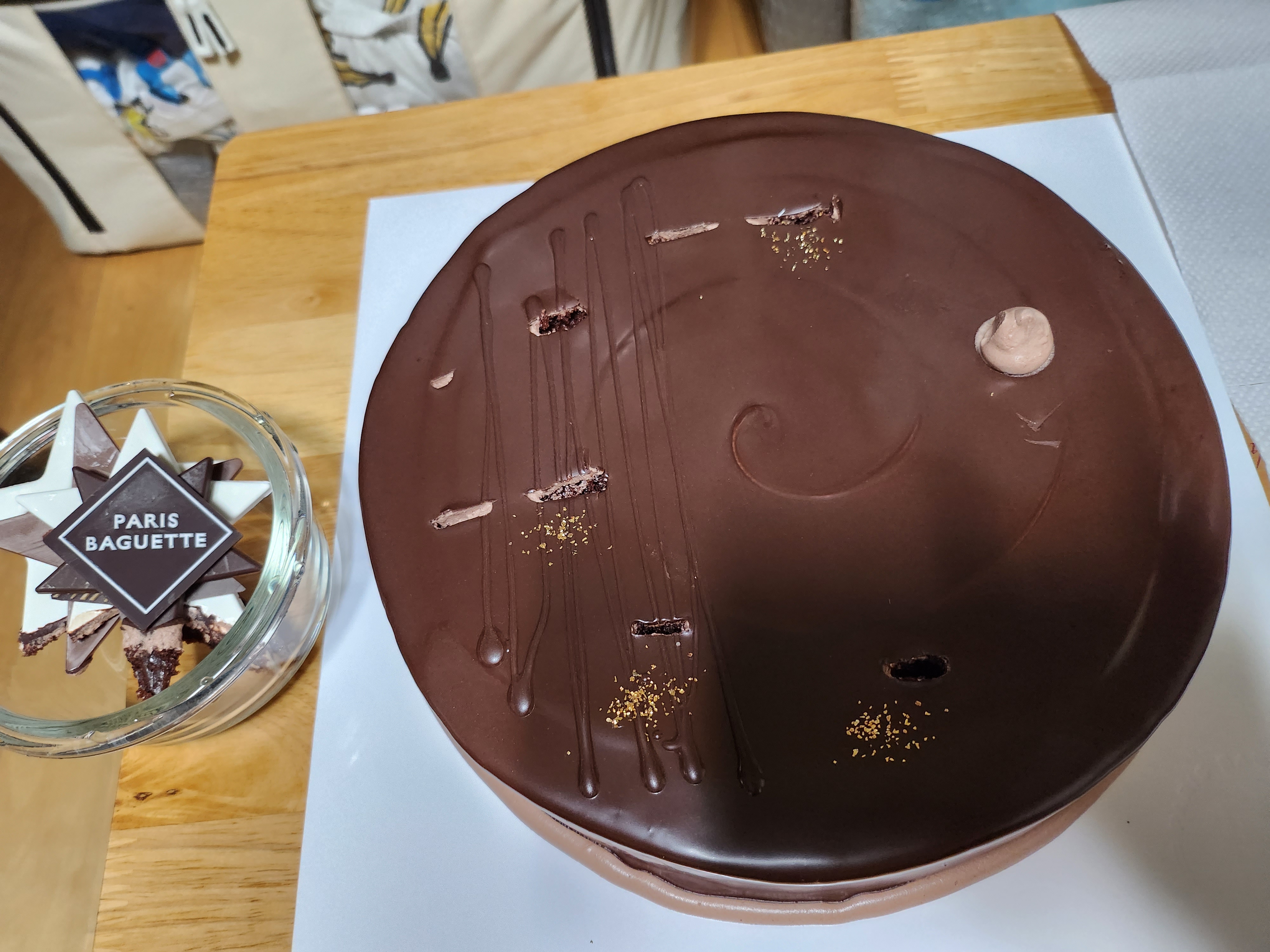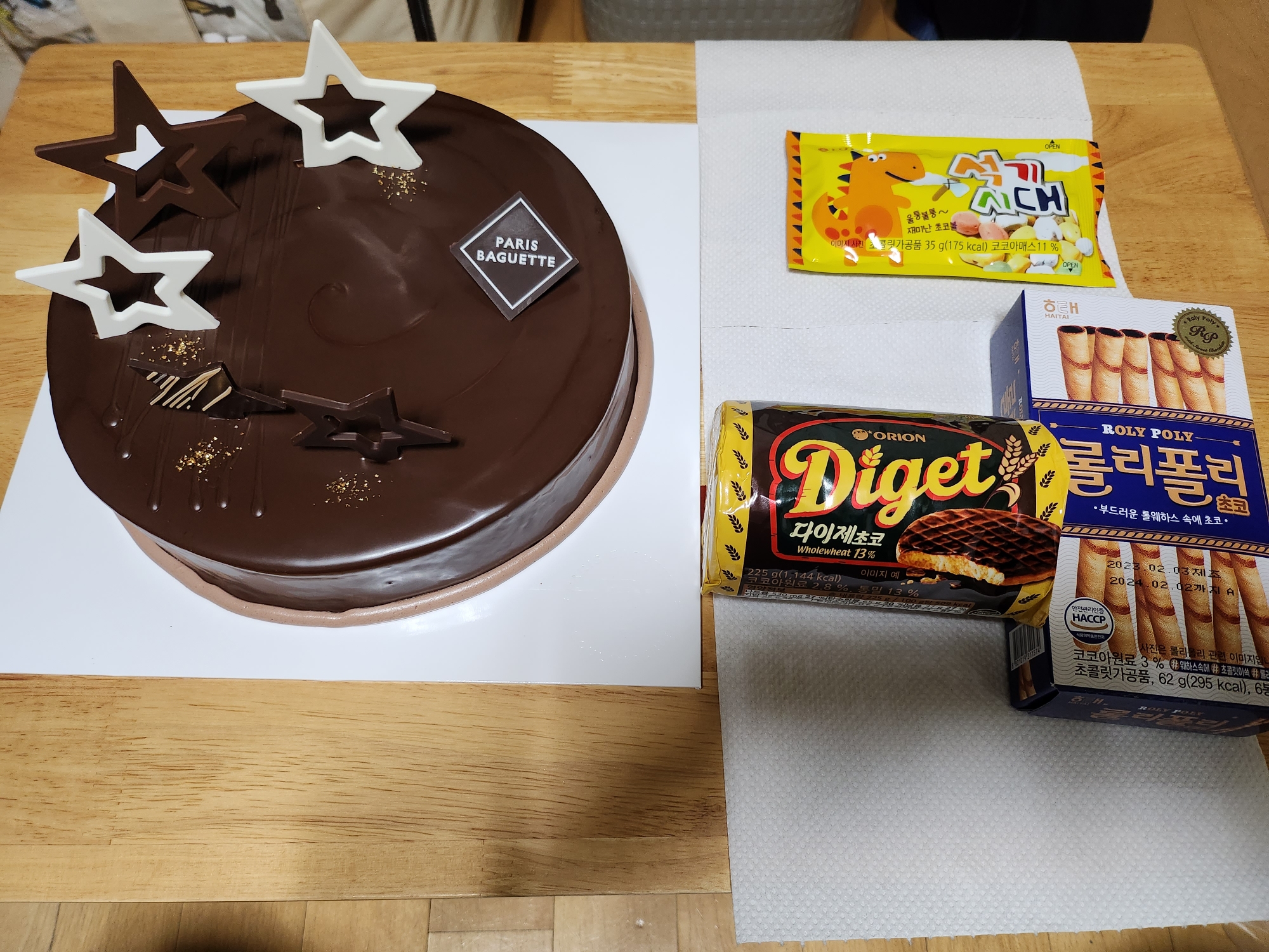 초콜릿케이크는 파리바게뜨에서 트윙클 에뚜아르 쇼콜라 21Cm로 준비했습니다.