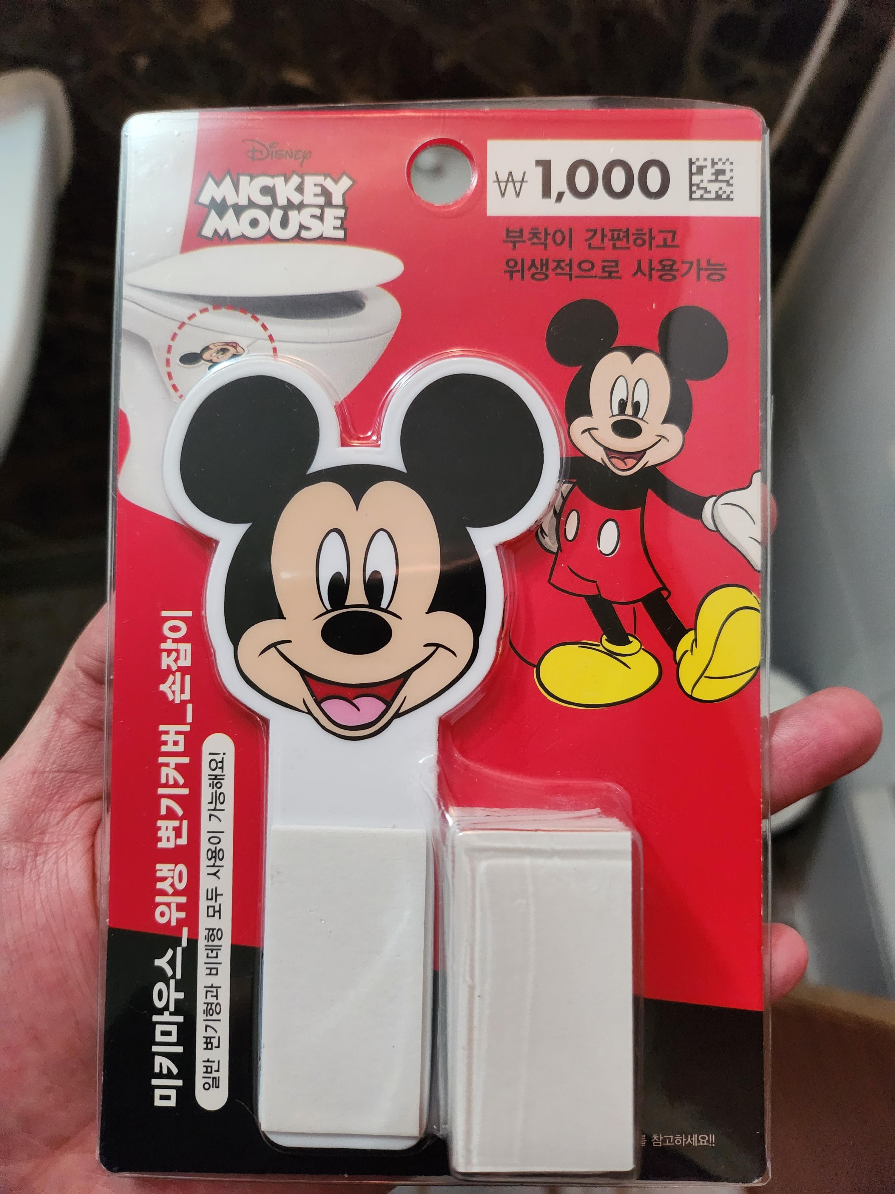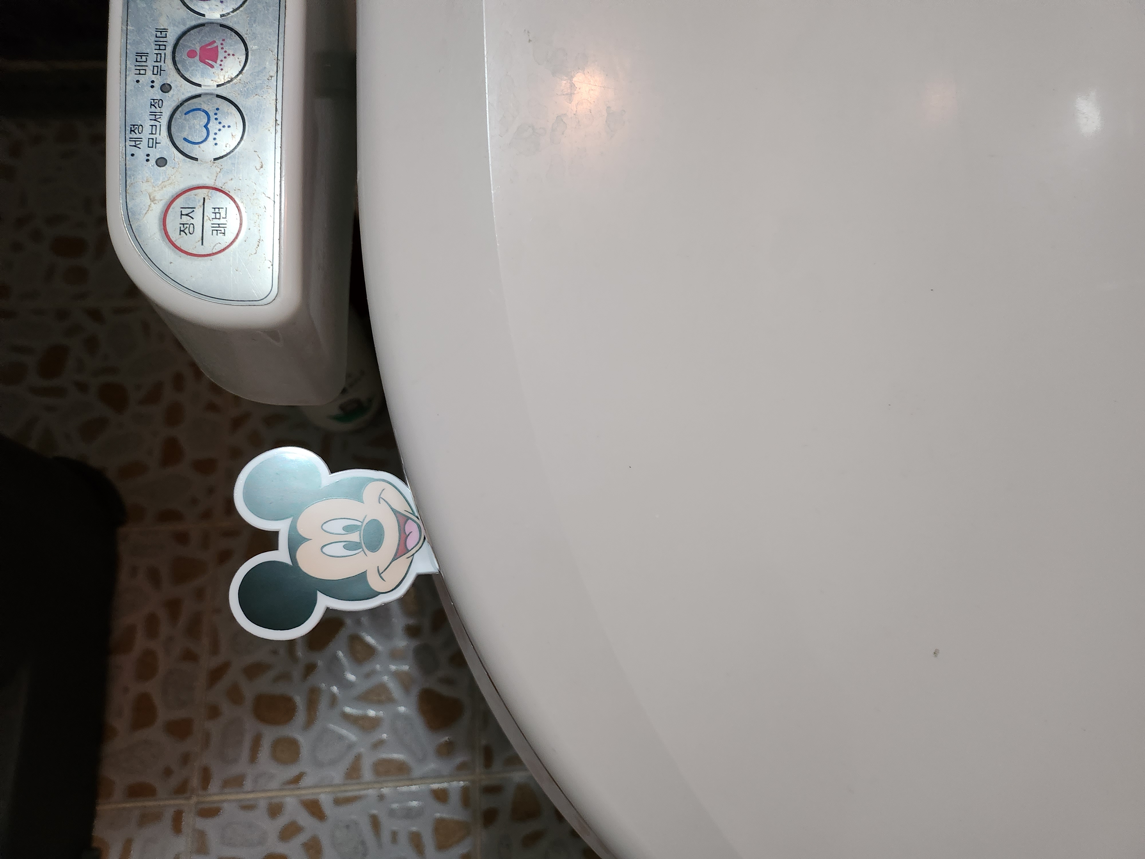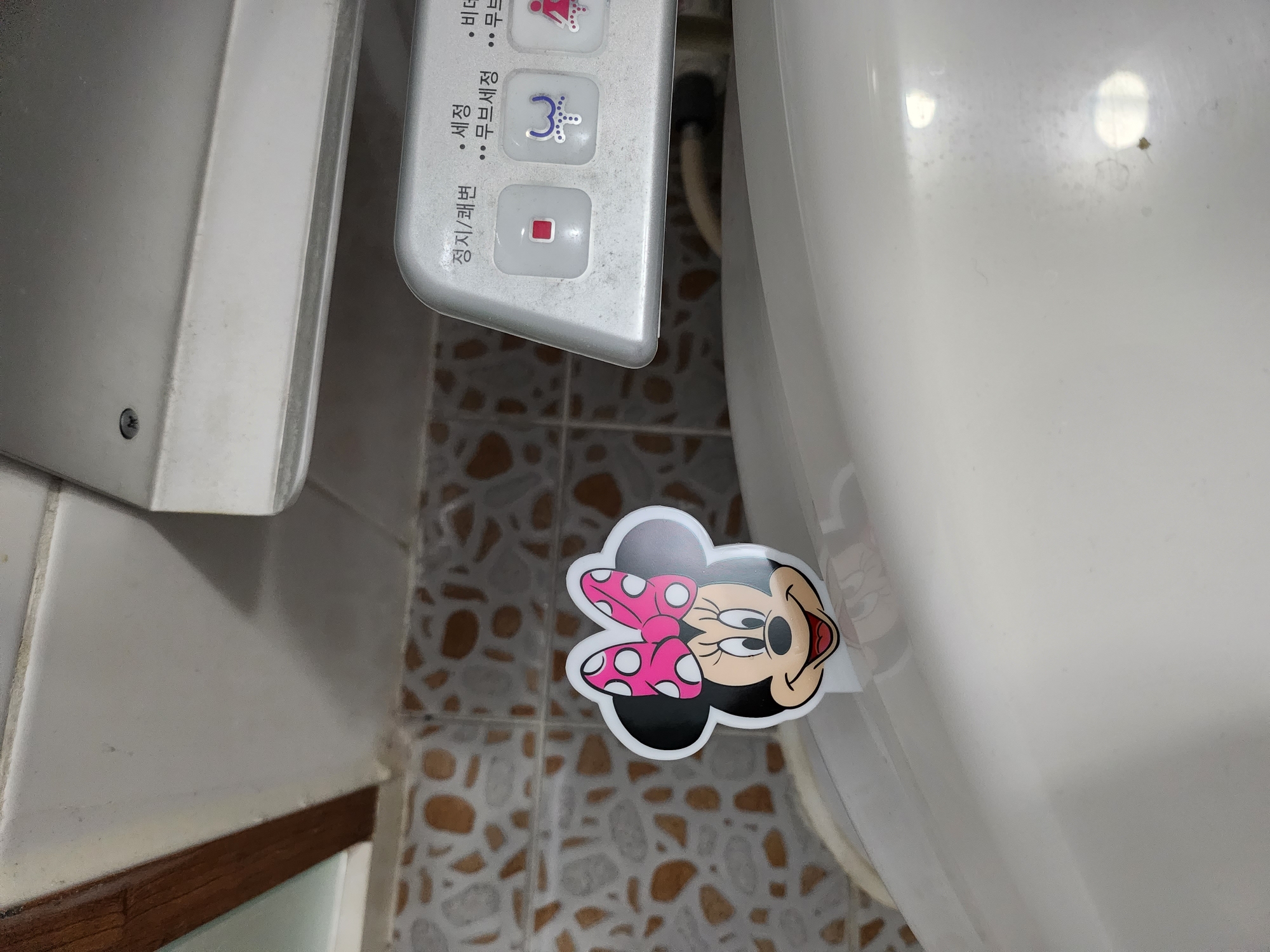 거실 화장실에 미키를 적절한 위치에 잘 부착하였습니다.