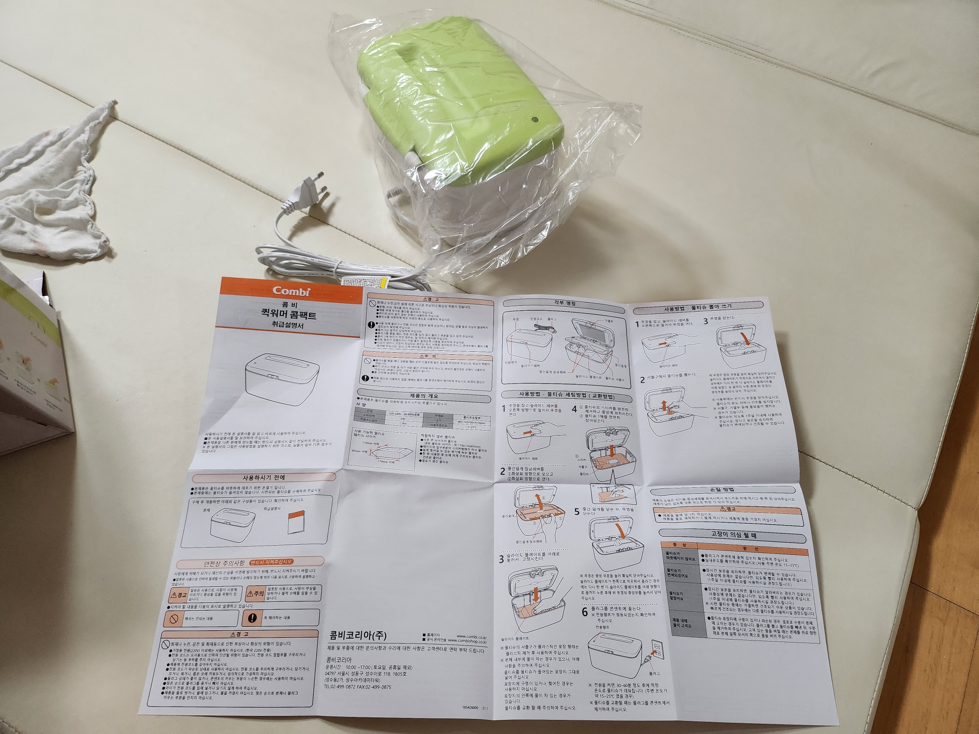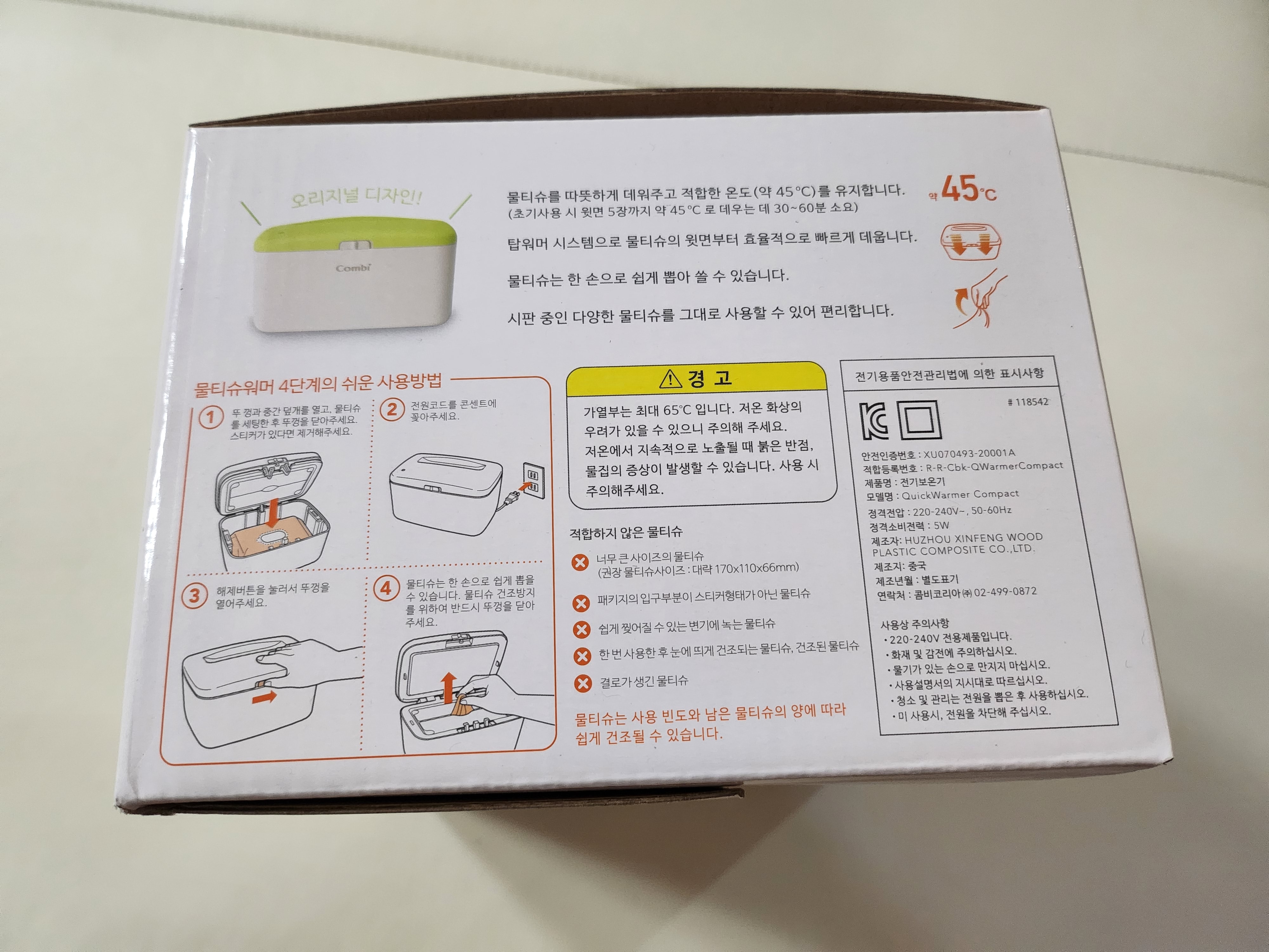 출산선물로 친구에게 콤비 물티슈워머를 선물 받았습니다.