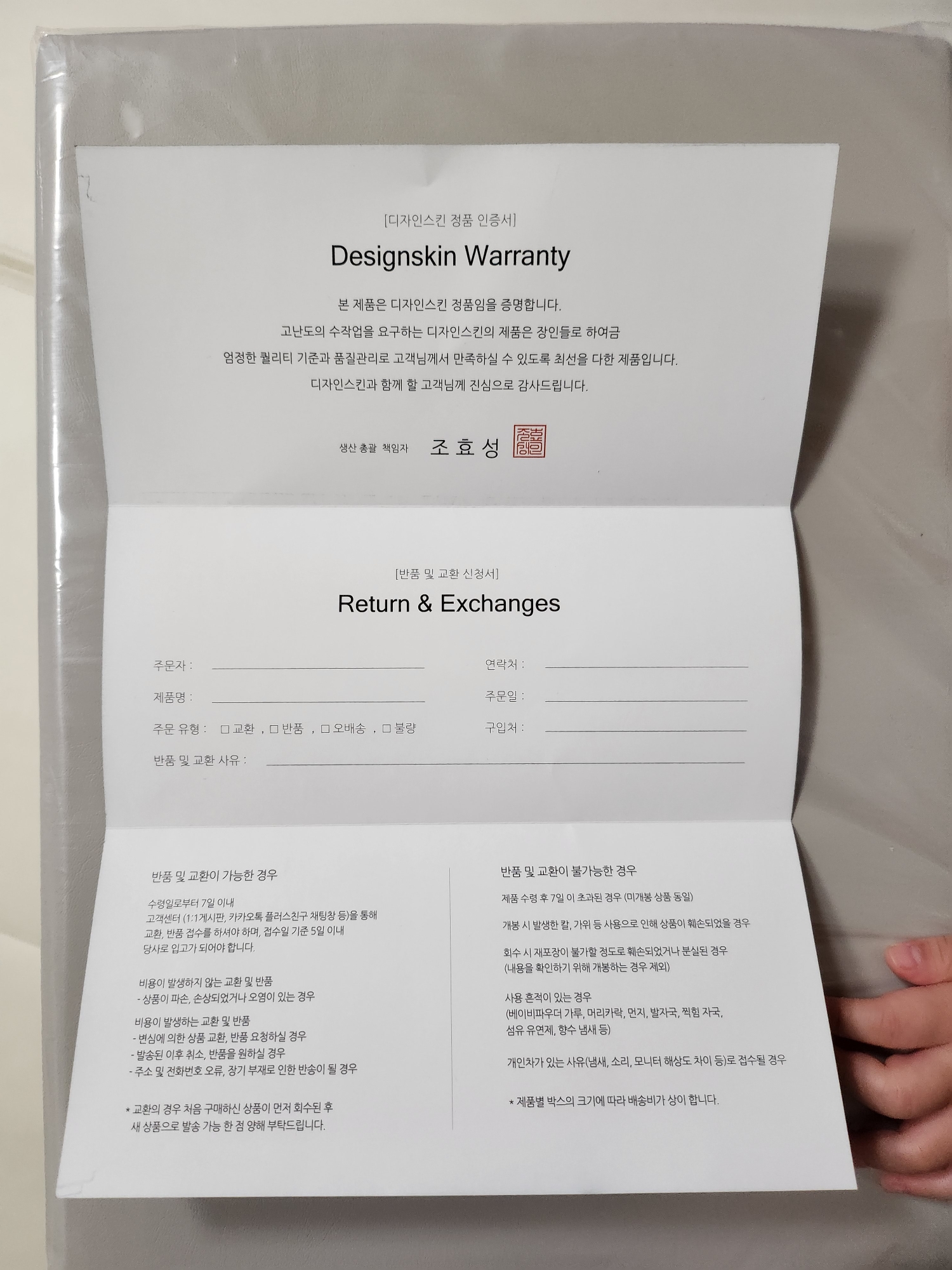 정품 인증서와 함께 아주 큰 택배 박스가 도착했습니다.
