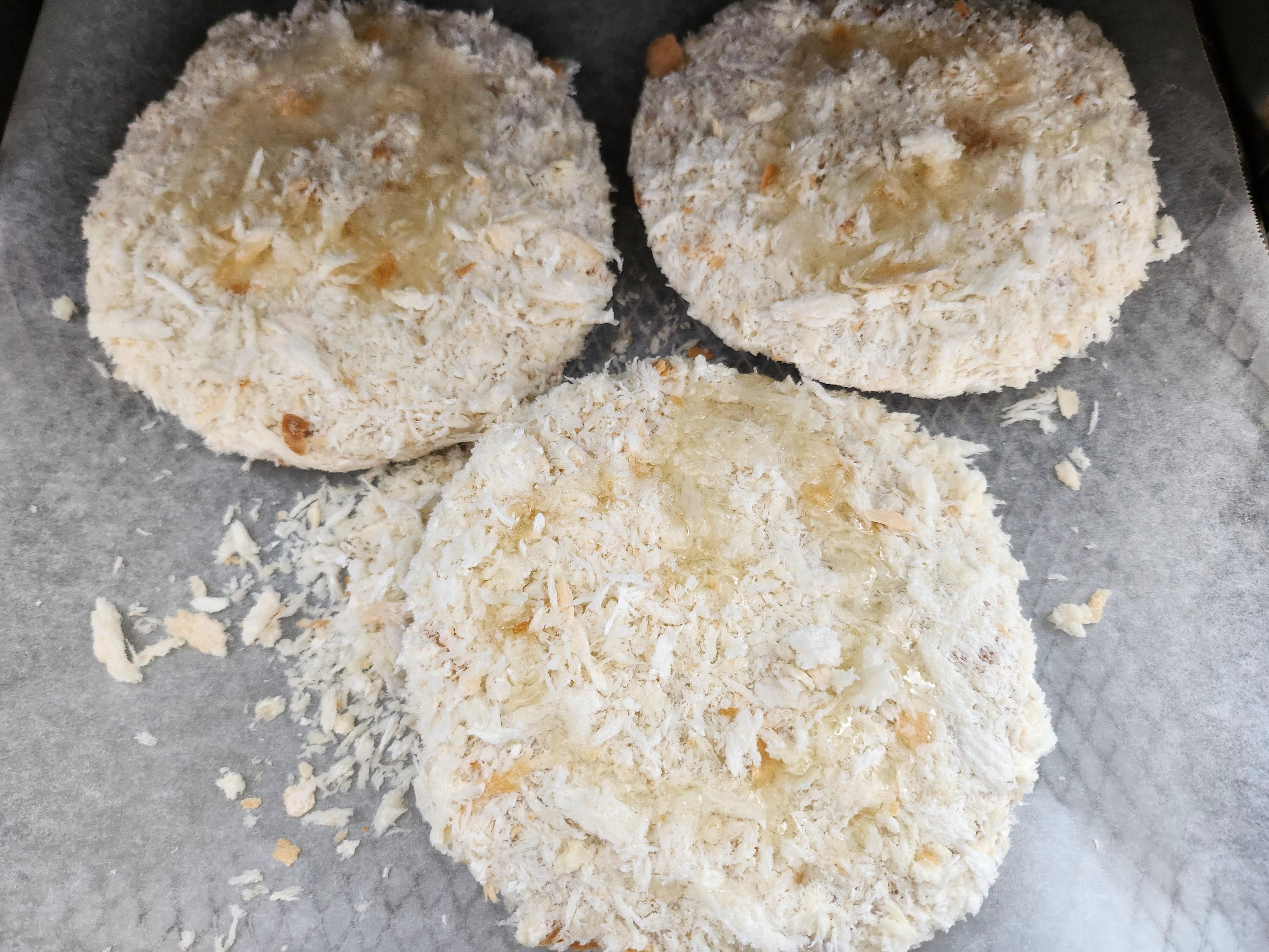 돈까스 표면에 촉촉하게 잘 익도록 식용유를 살짝 뿌려주었습니다.