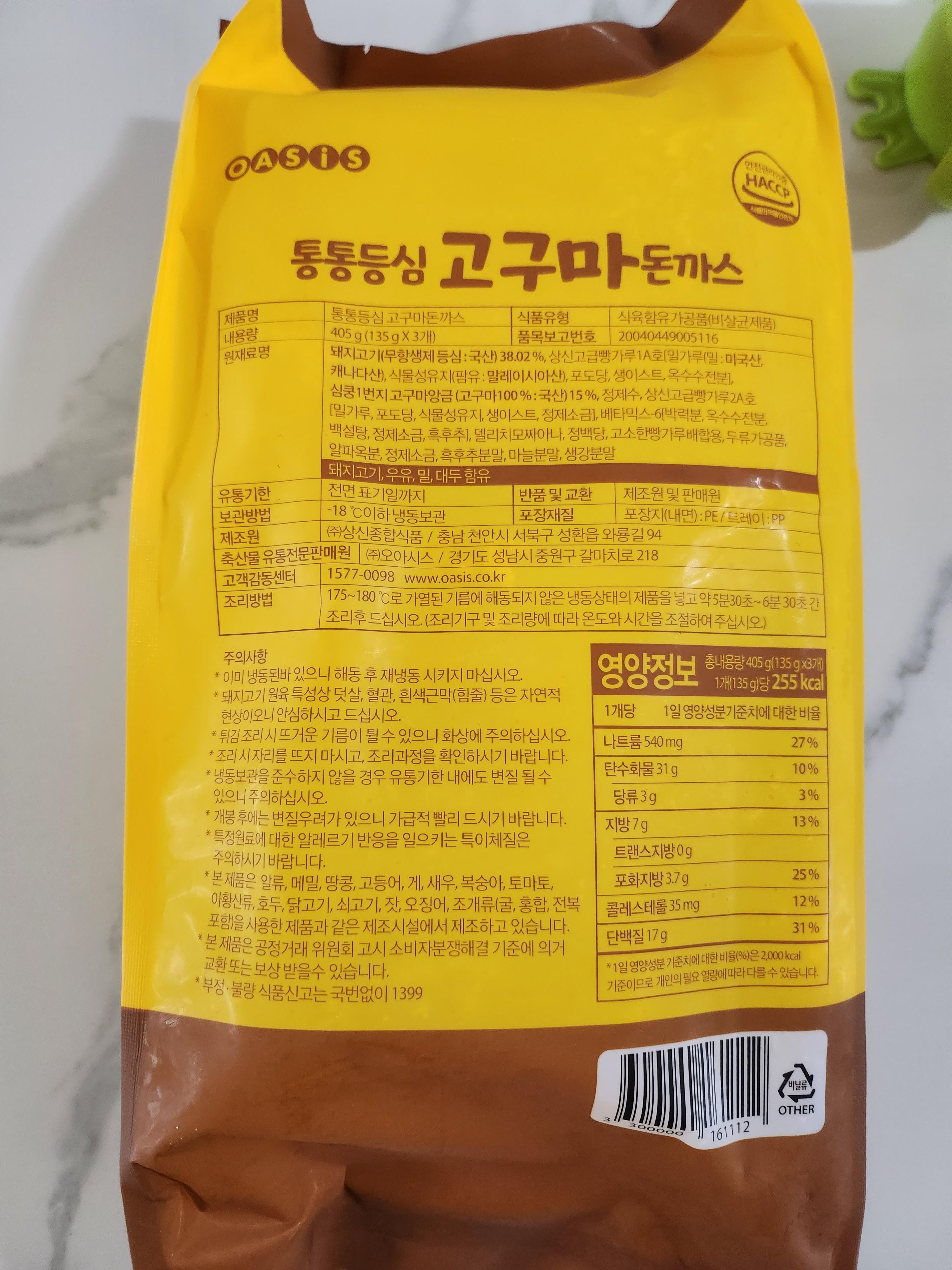 오아시스에서 무항생제 통통등심 고구마 돈까스를 구매했습니다.