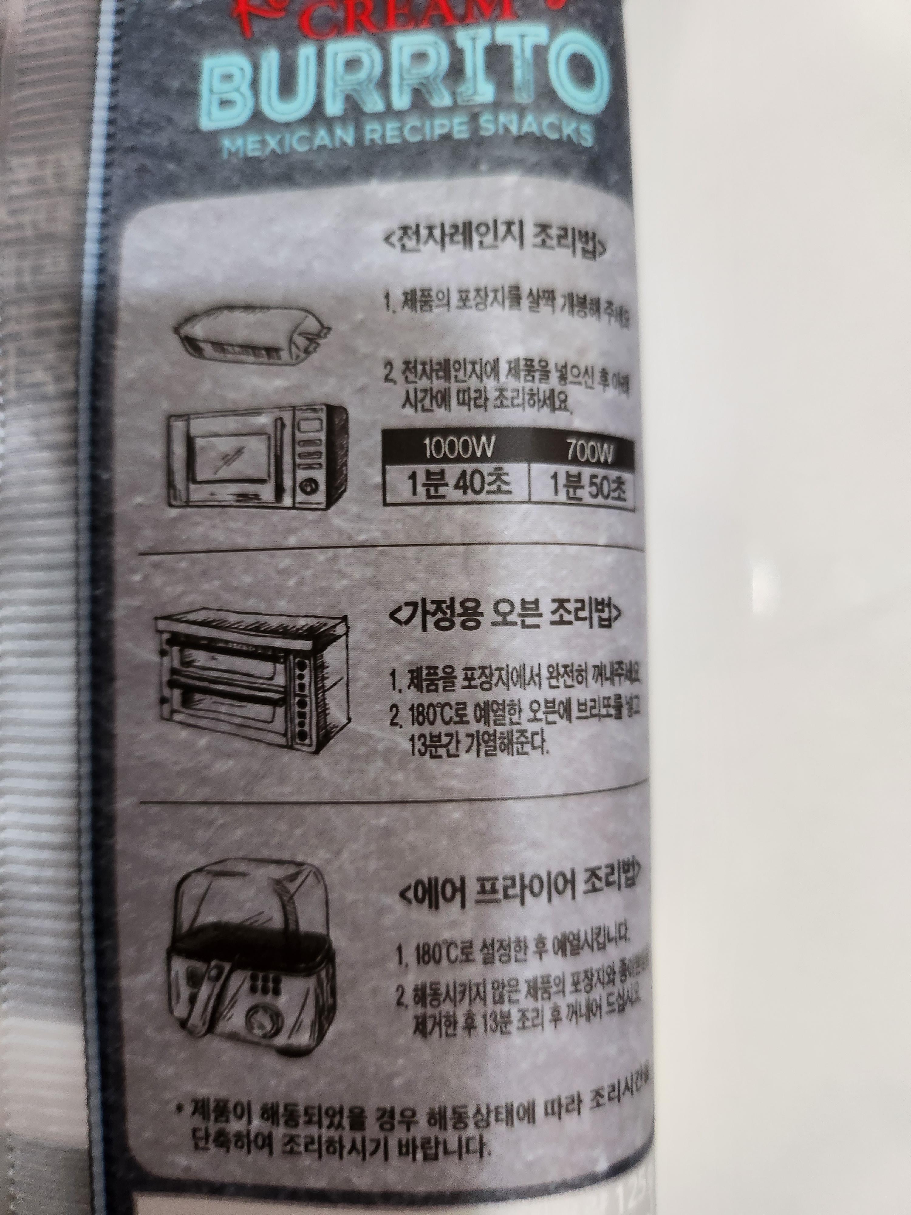냉동 제품이고 포장지를 살짝 뜯어 2분 정도 전자레인지에 돌려 먹습니다.