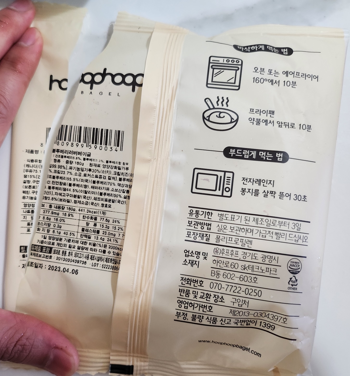 하지만 이 제품은 베이글 안에 블루베리와 치즈가 들어있기 때문에 반으로 가르지 않고 조리합니다.
