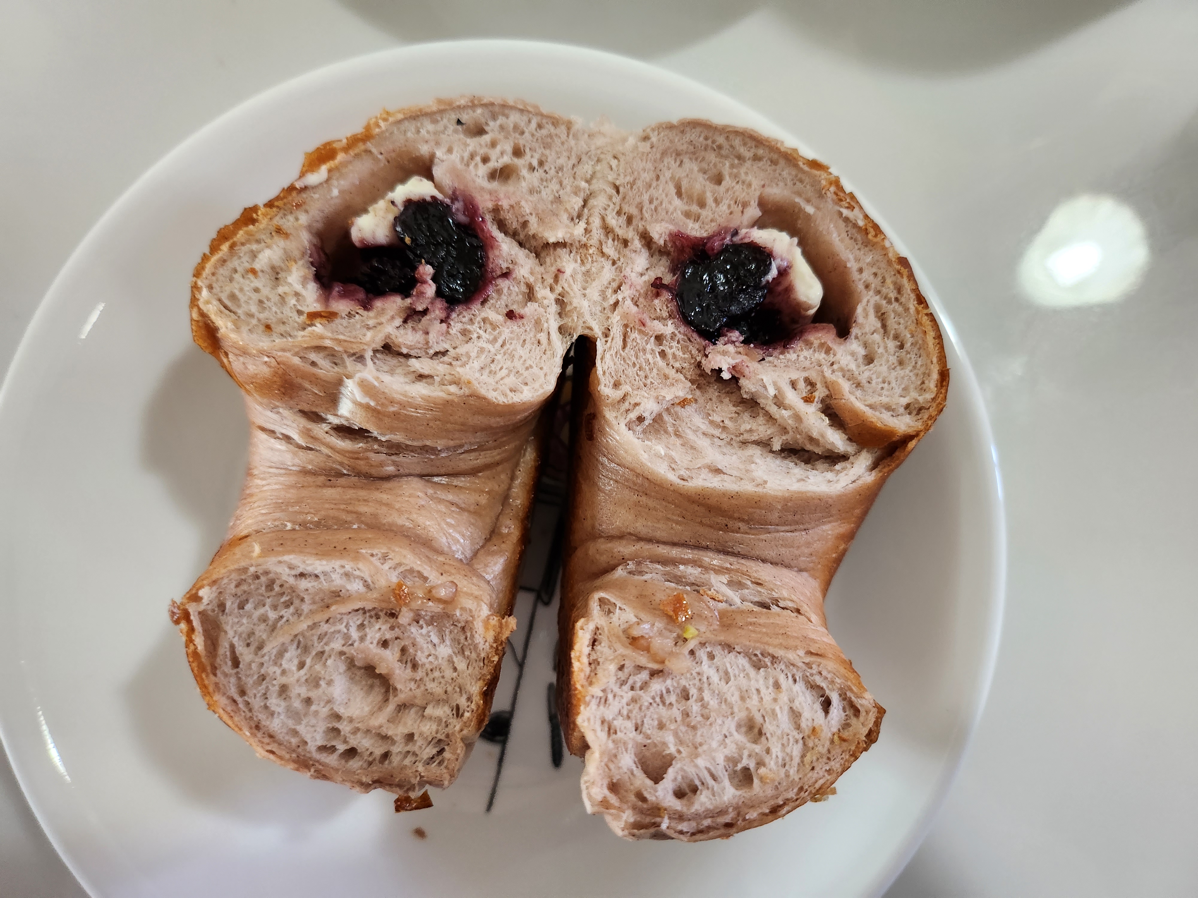 모든 부분에 블루베리 잼과 크림치즈가 있진 않았지만 달달하고 바삭하게 맛있게 먹었습니다.