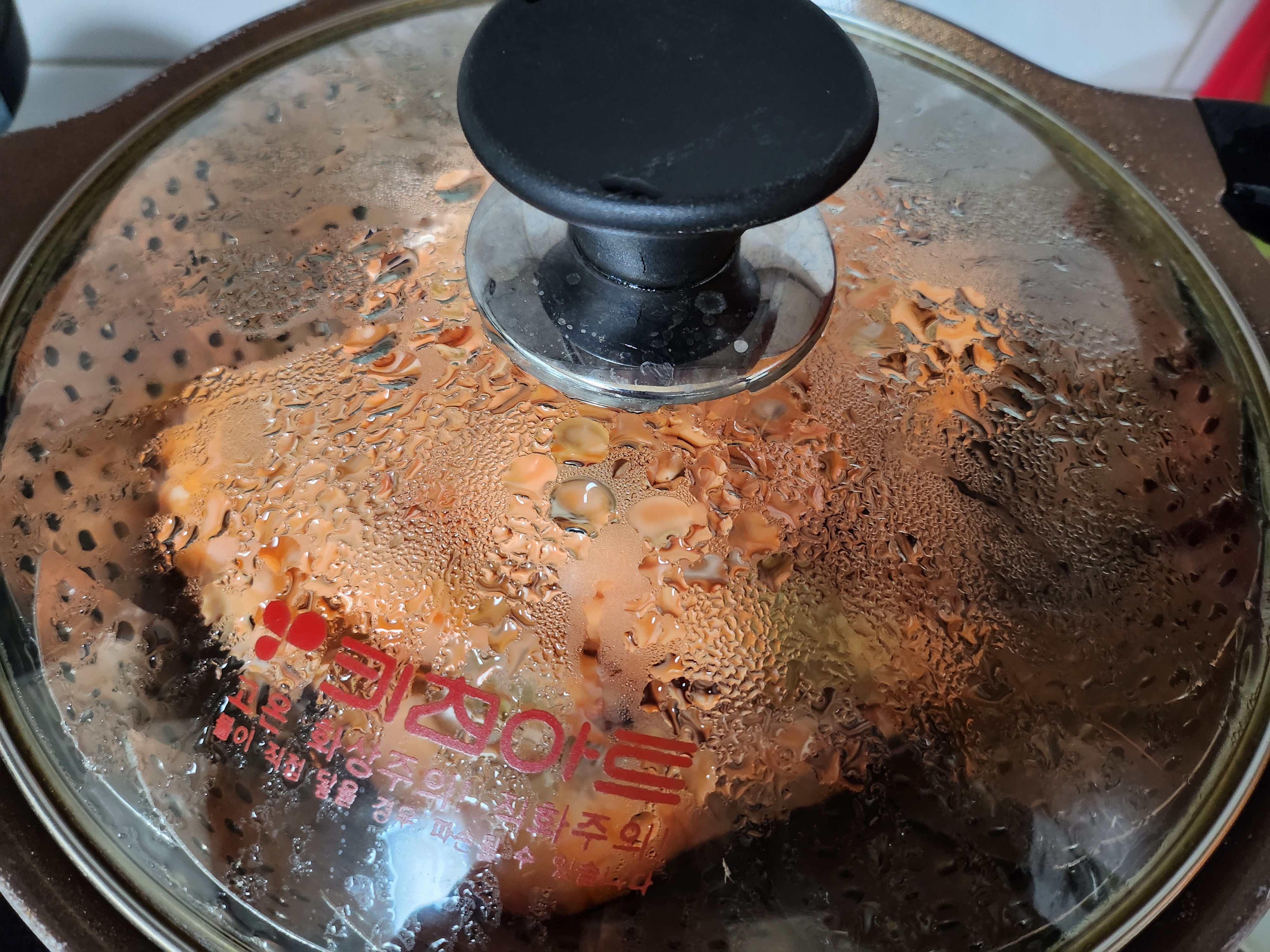 뚜껑을 덮고 새우를 찌기 시작합니다.
