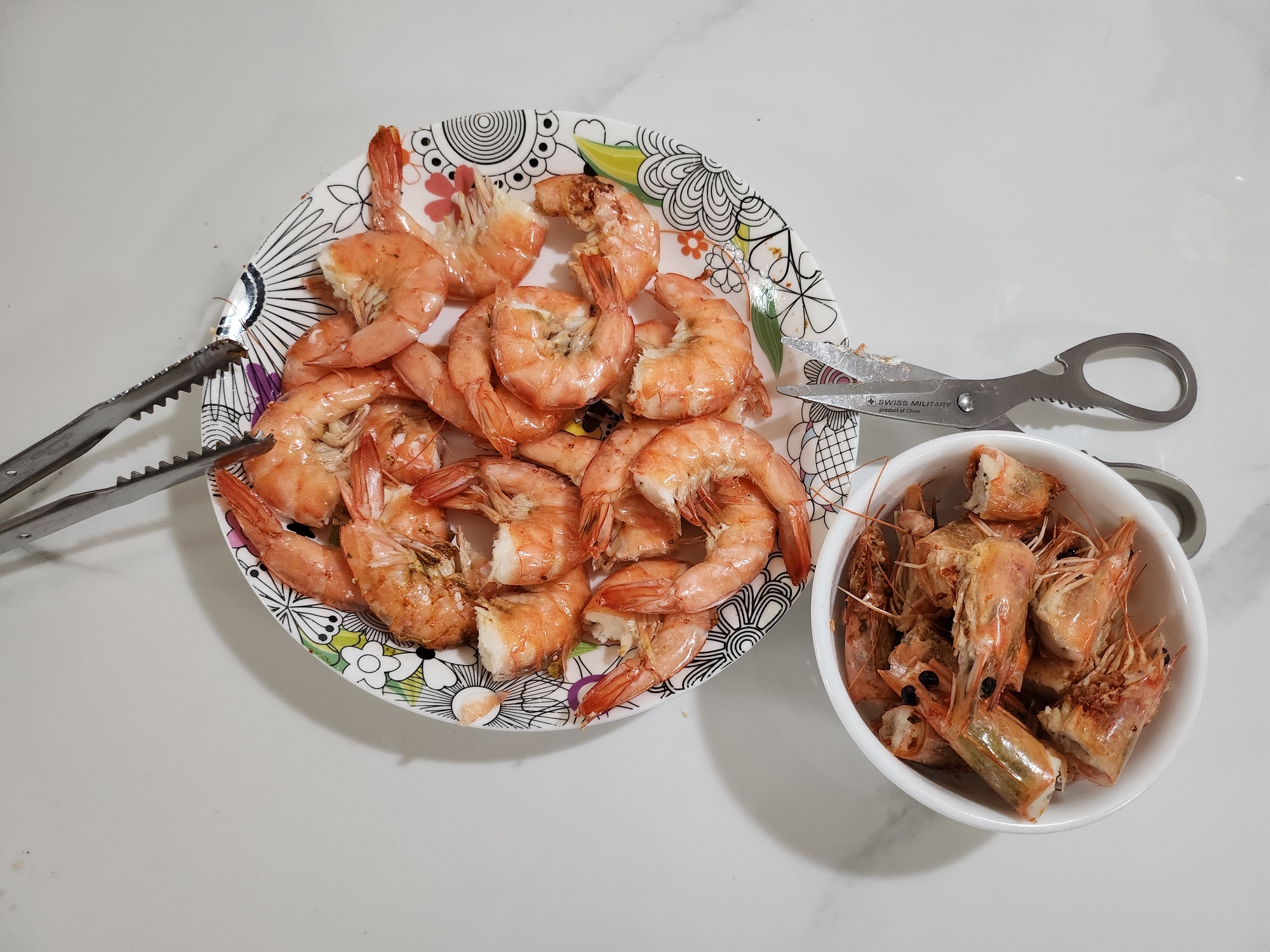 새우 머리는 껍질을 쏙 하고 벗겨 먹습니다. 바삭바삭 고소하게 맛이 좋습니다.
