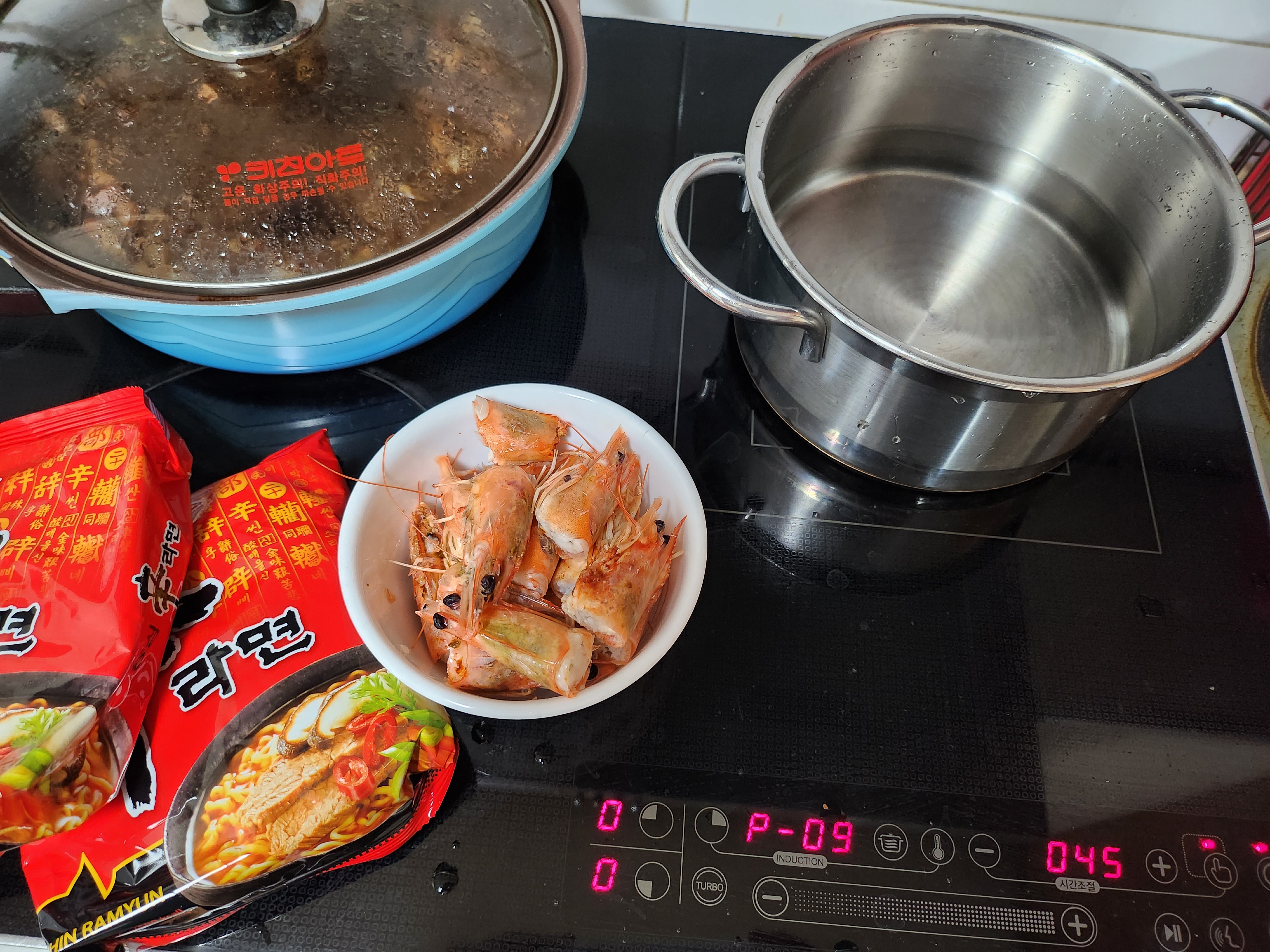 찜에는 라면이 어울릴듯해서 새우 라면을 만들었어요.